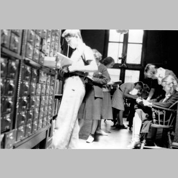 p9049 Buildings & Institutions Libraries Montclair Public Library Third Building Church Street Interiors Libraries People group portrait Library Patrons