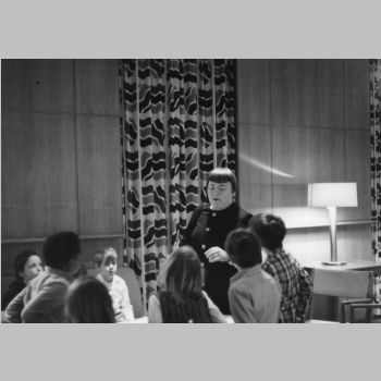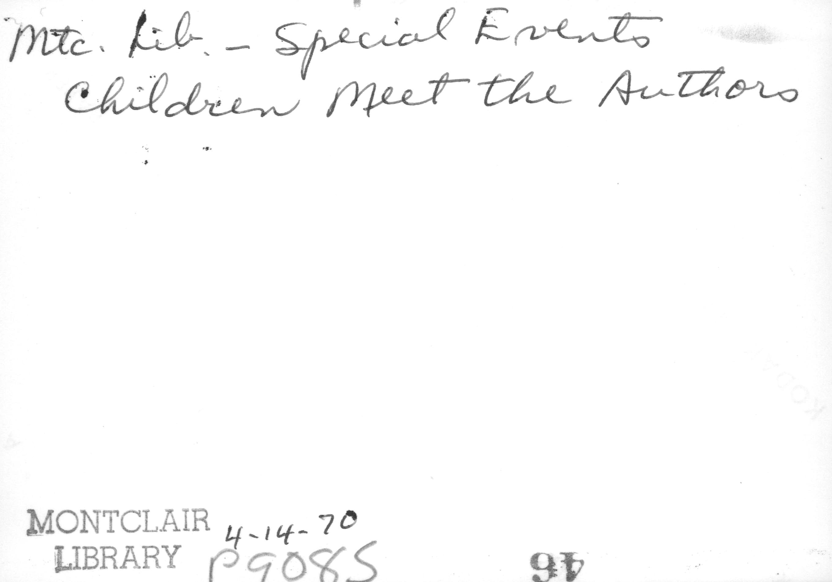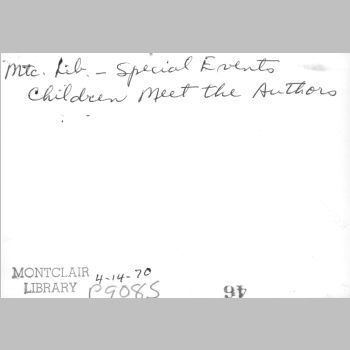 p9085 Buildings & Institutions Libraries Montclair Public Library Fourth Building 50 South Fullerton Avenue Interiors Libraries People group portrait Events Special "Children Meet the Authors" April 14, 1970