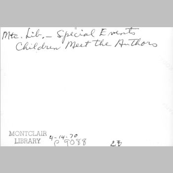 p9088 Buildings & Institutions Libraries Montclair Public Library Fourth Building 50 South Fullerton Avenue Interiors Libraries People group portrait Events Special "Children Meet the Authors" April 14, 1970