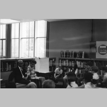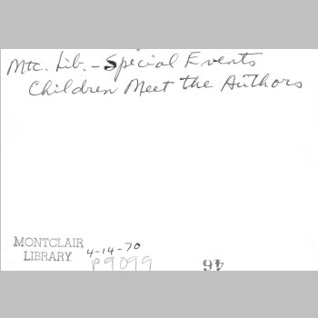p9099 Buildings & Institutions Libraries Montclair Public Library Fourth Building 50 South Fullerton Avenue Interiors Libraries People group portrait Events Special "Children Meet the Authors" April 14, 1970
