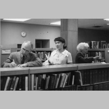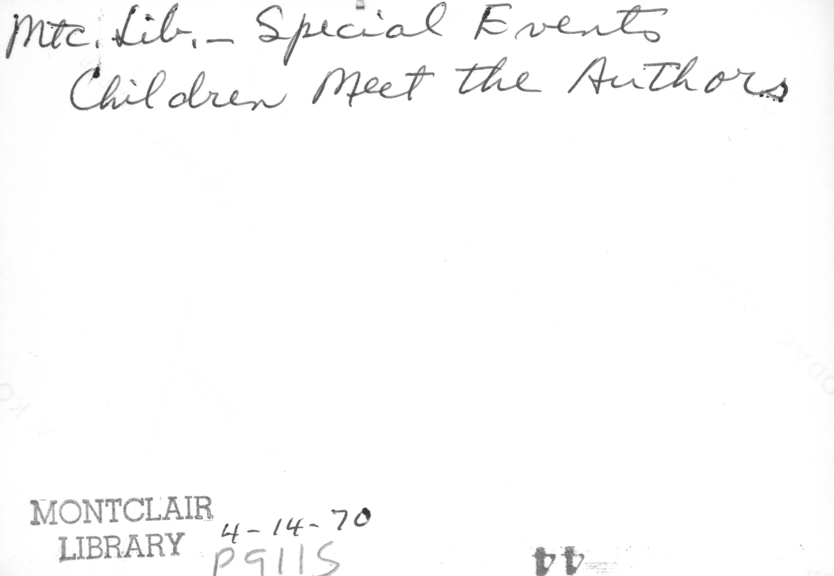 p9115 Buildings & Institutions Libraries Montclair Public Library Fourth Building 50 South Fullerton Avenue Interiors Libraries People group portrait Events Special "Children Meet the Authors" April 14, 1970