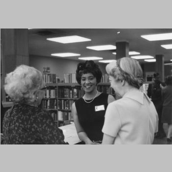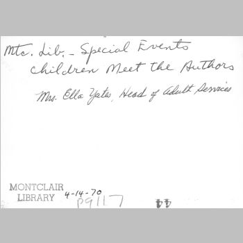 p9117 Buildings & Institutions Libraries Montclair Public Library Fourth Building 50 South Fullerton Avenue Interiors Libraries People group portrait Events Special "Children Meet the Authors" April 14, 1970