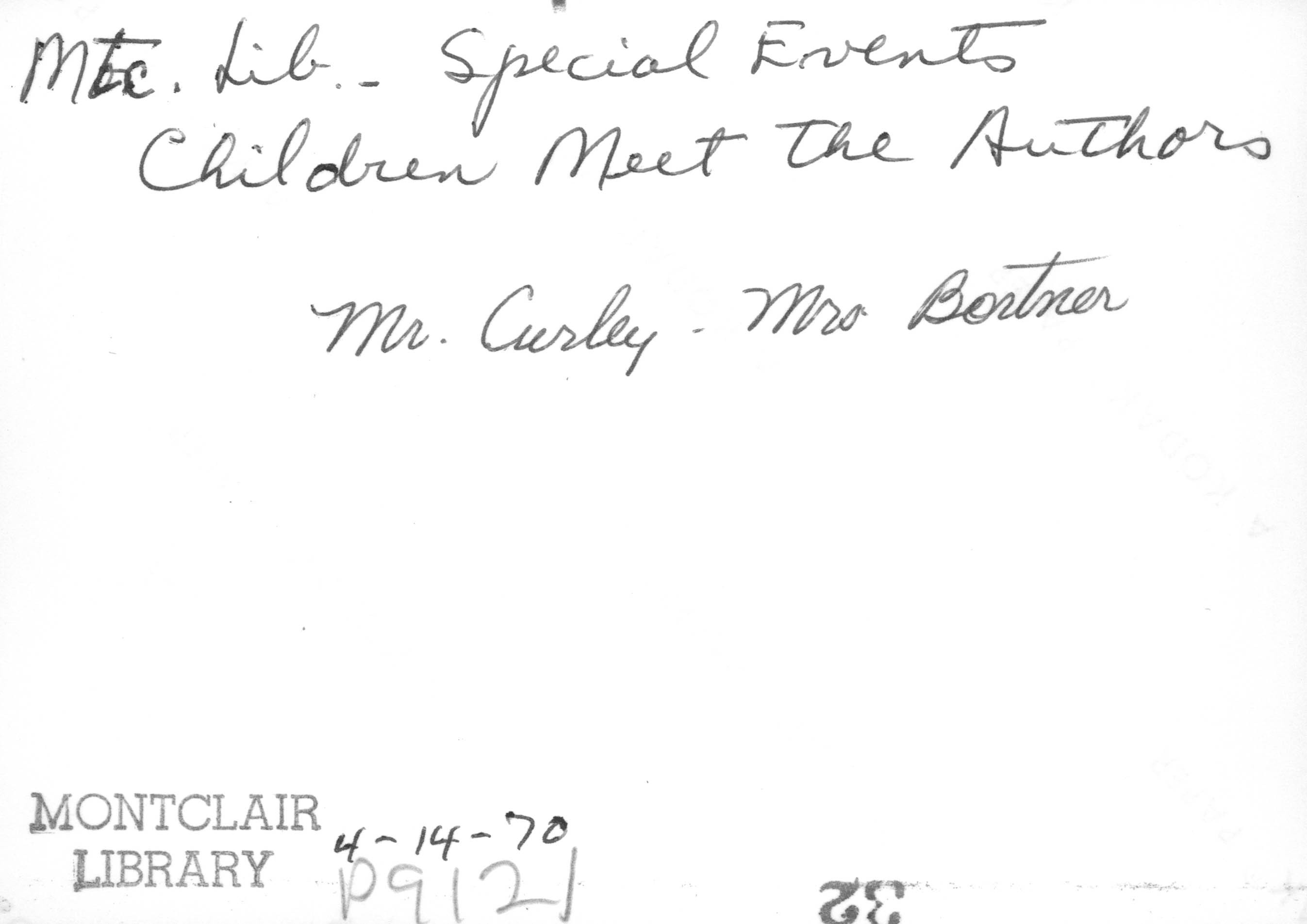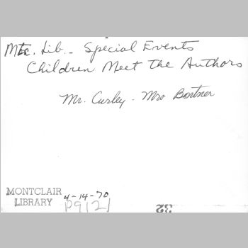 p9121 Buildings & Institutions Libraries Montclair Public Library Fourth Building 50 South Fullerton Avenue Interiors Libraries People group portrait Events Special "Children Meet the Authors" April 14, 1970