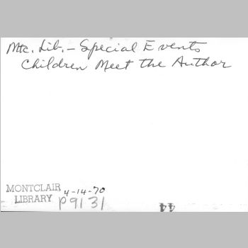 p9131 Buildings & Institutions Libraries Montclair Public Library Fourth Building 50 South Fullerton Avenue Interiors Libraries People group portrait Events Special "Children Meet the Authors" April 14, 1970
