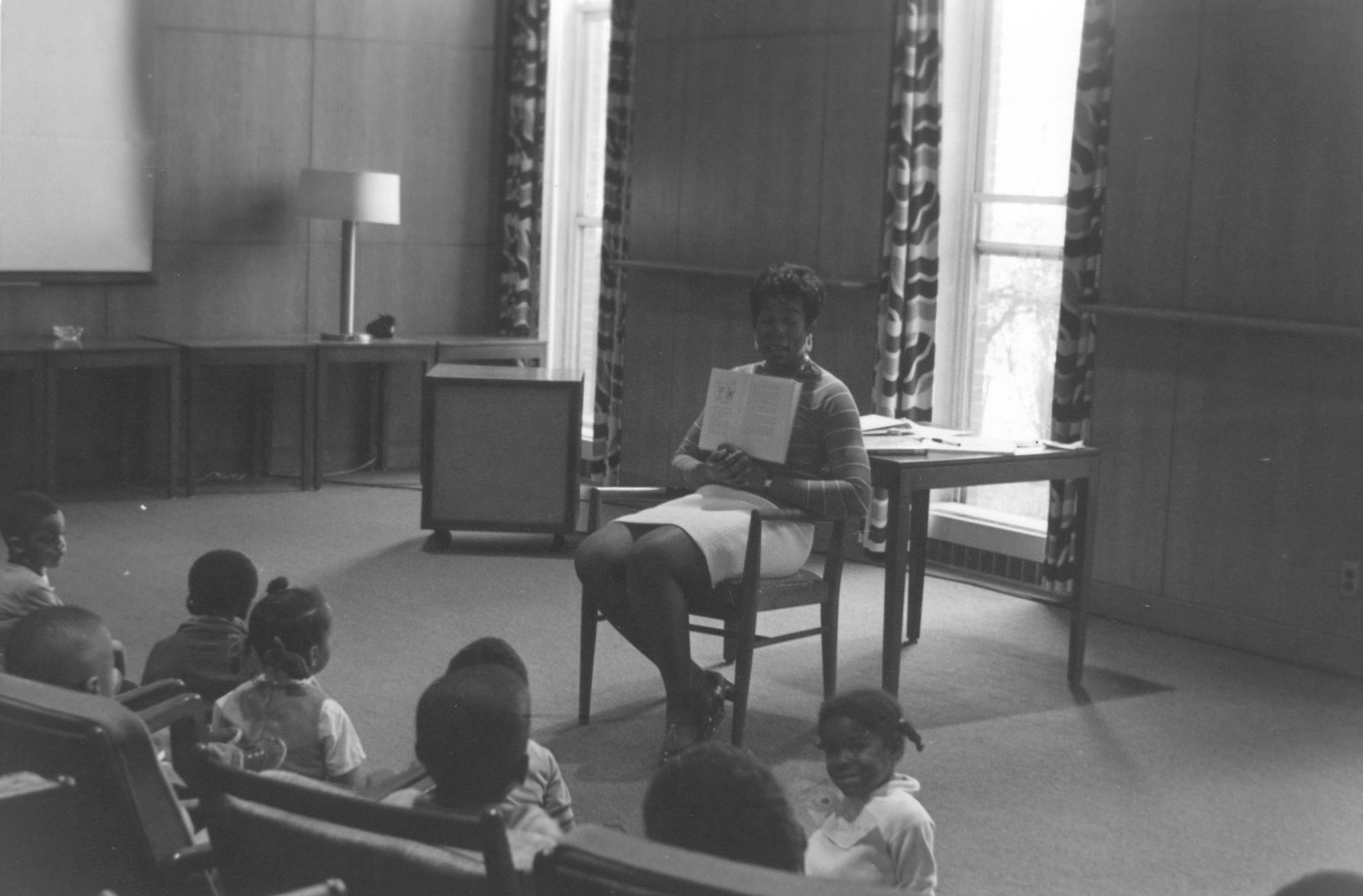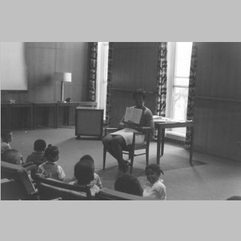 p9143 Buildings & Institutions Libraries Montclair Public Library Fourth Building 50 South Fullerton Avenue Interiors Libraries People group portrait Daisy Hightower Librarians Events Special "Head Start Children Story Hours" May 1971