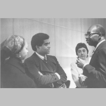 p9149 Buildings & Institutions Libraries Montclair Public Library Fourth Building 50 South Fullerton Avenue Interiors Libraries People group portrait Events Special Reception for George Walker Composers Musicians November 14, 1971
