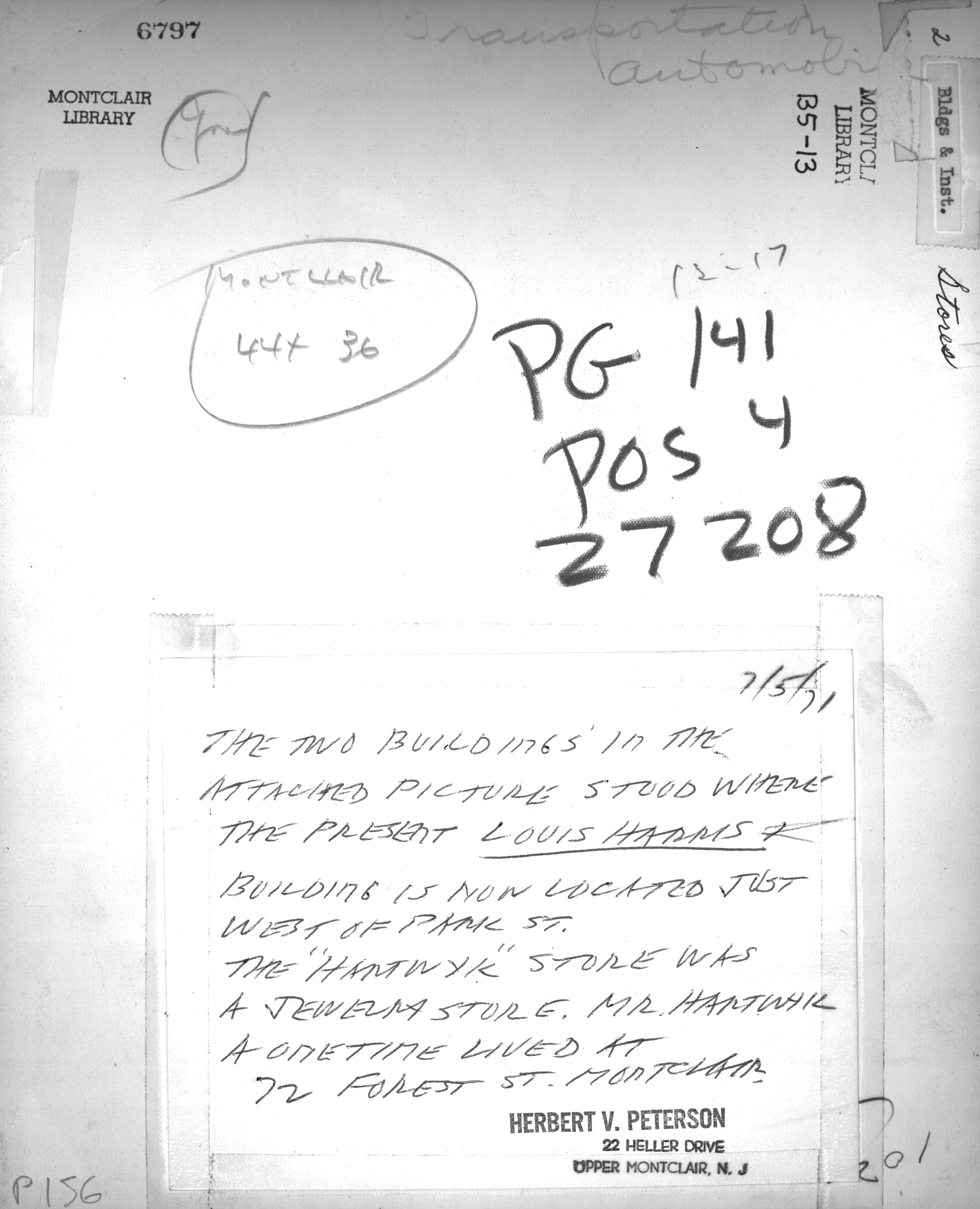 Bellevue Avenue Valley Road Upper Montclair ca. 1966