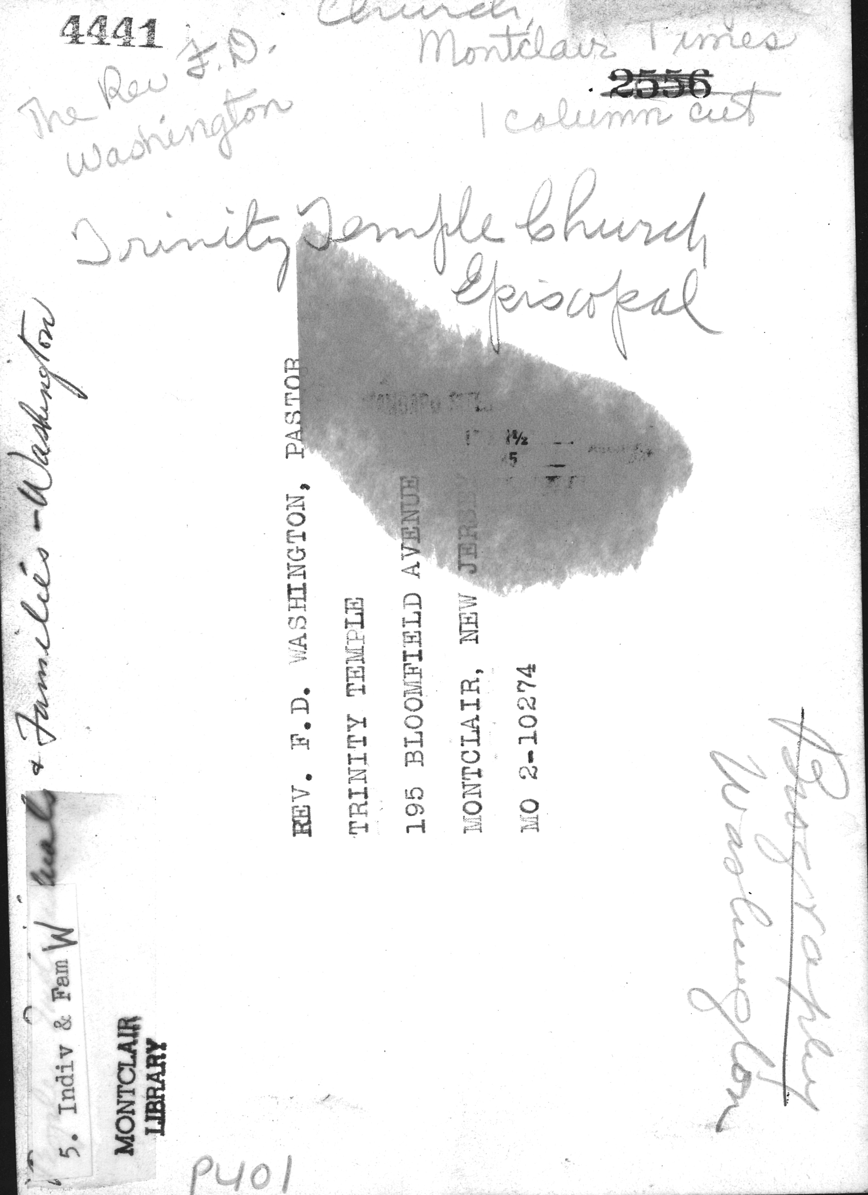 People portrait Rev. F. D. Washington Clergy