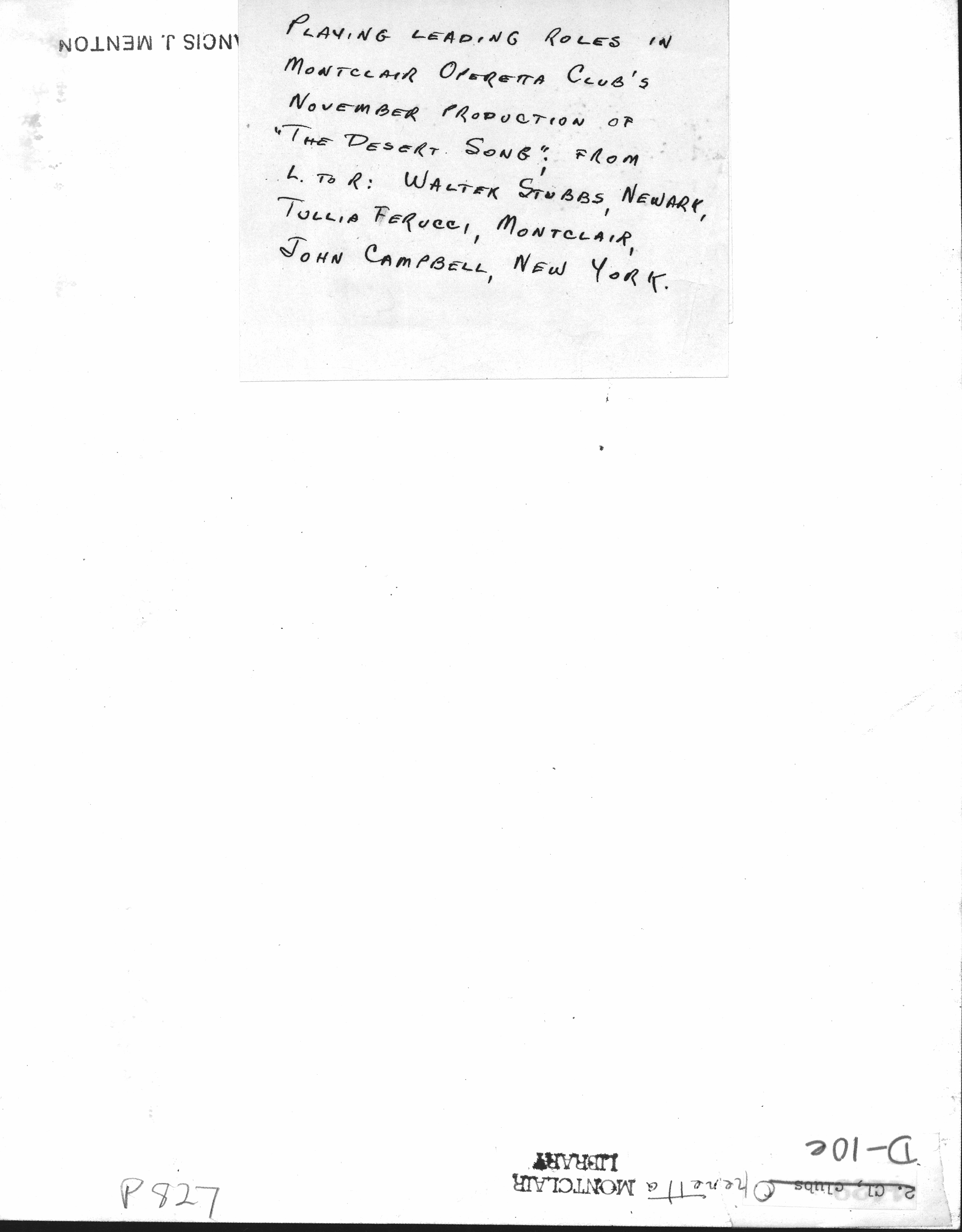 Walter Stubbs Tullia Ferucci John Campbell Actors of 'The Desert Song' ca. 1945