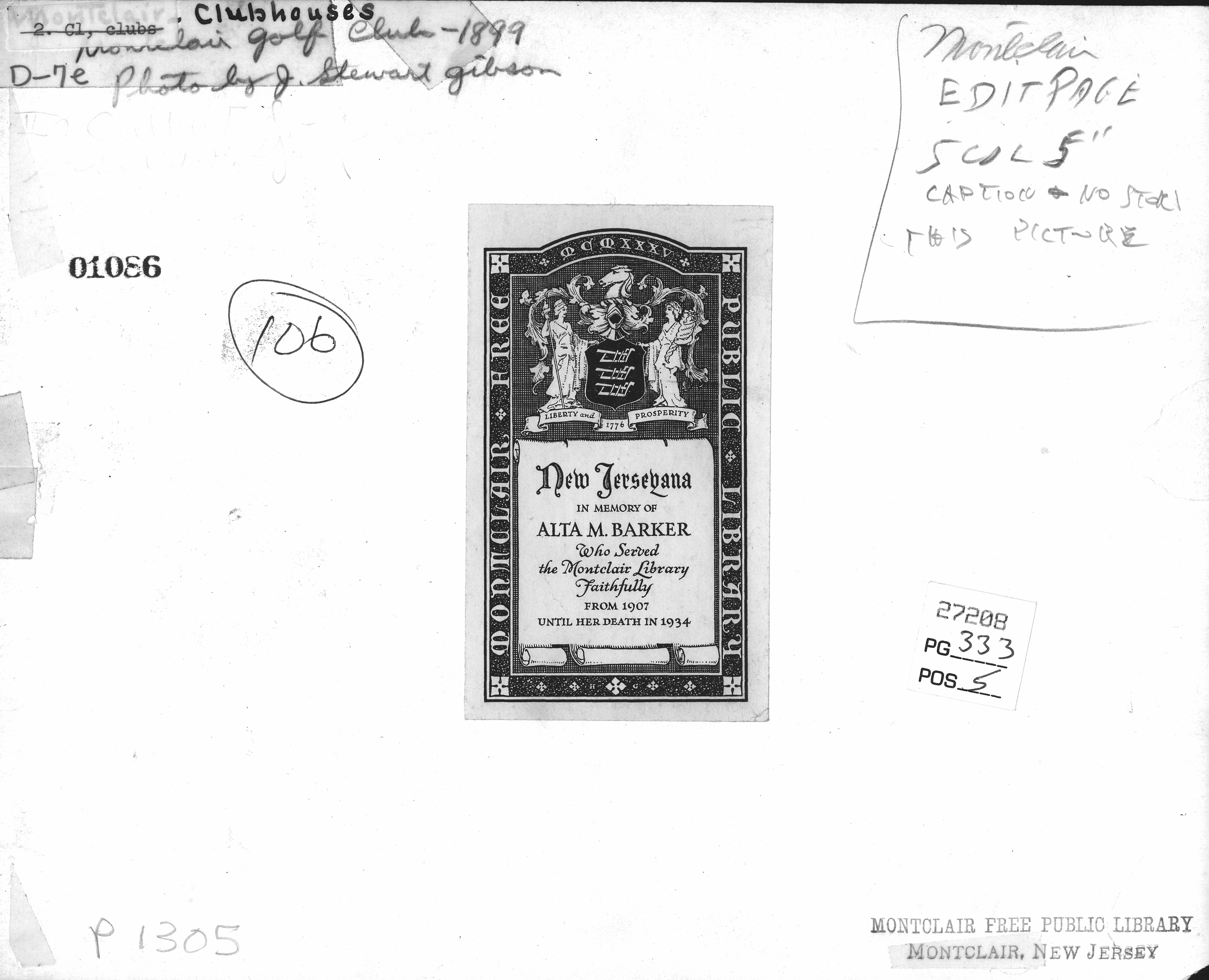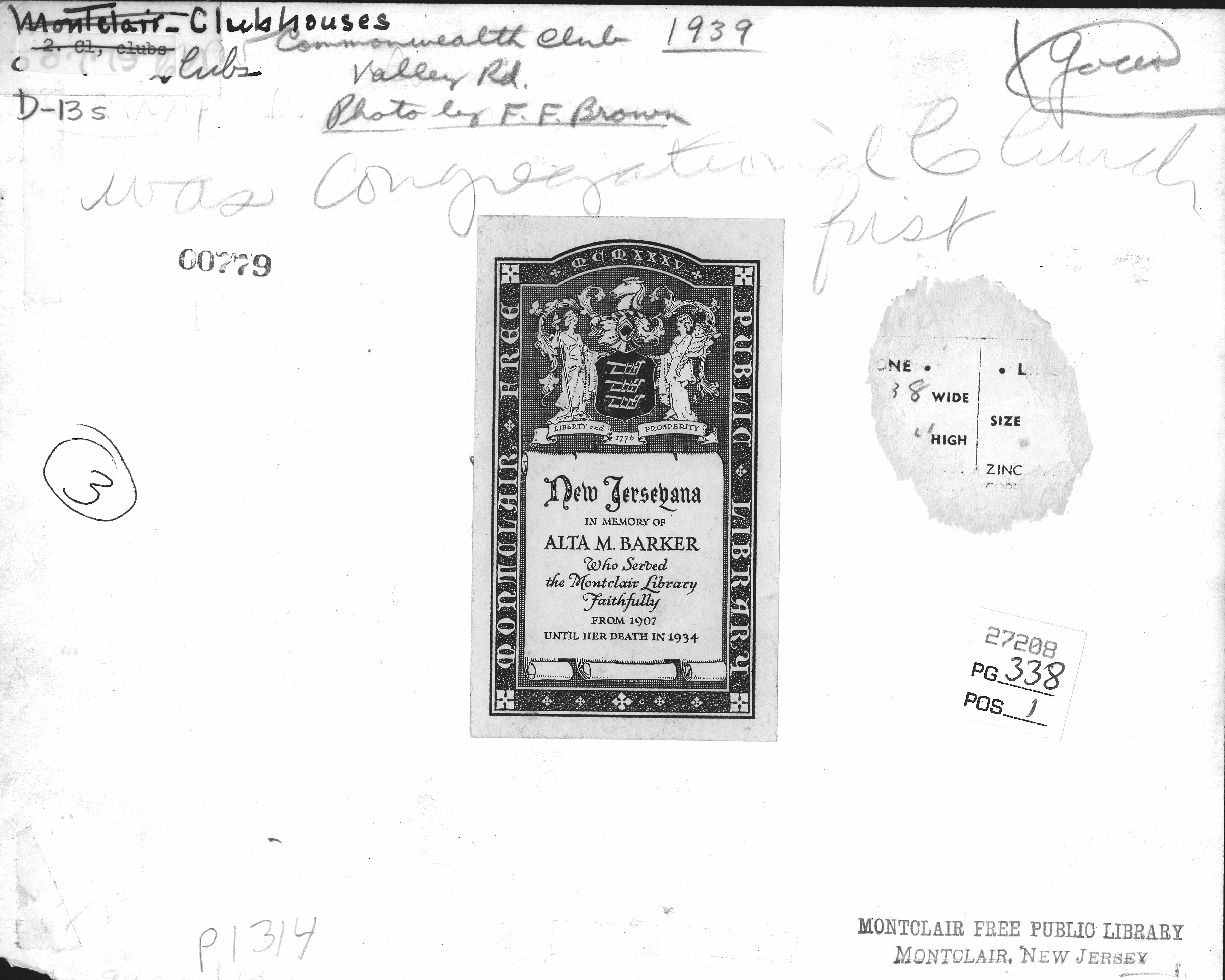 Upper Montclair (originally Christian Union Congregational Church) 1939