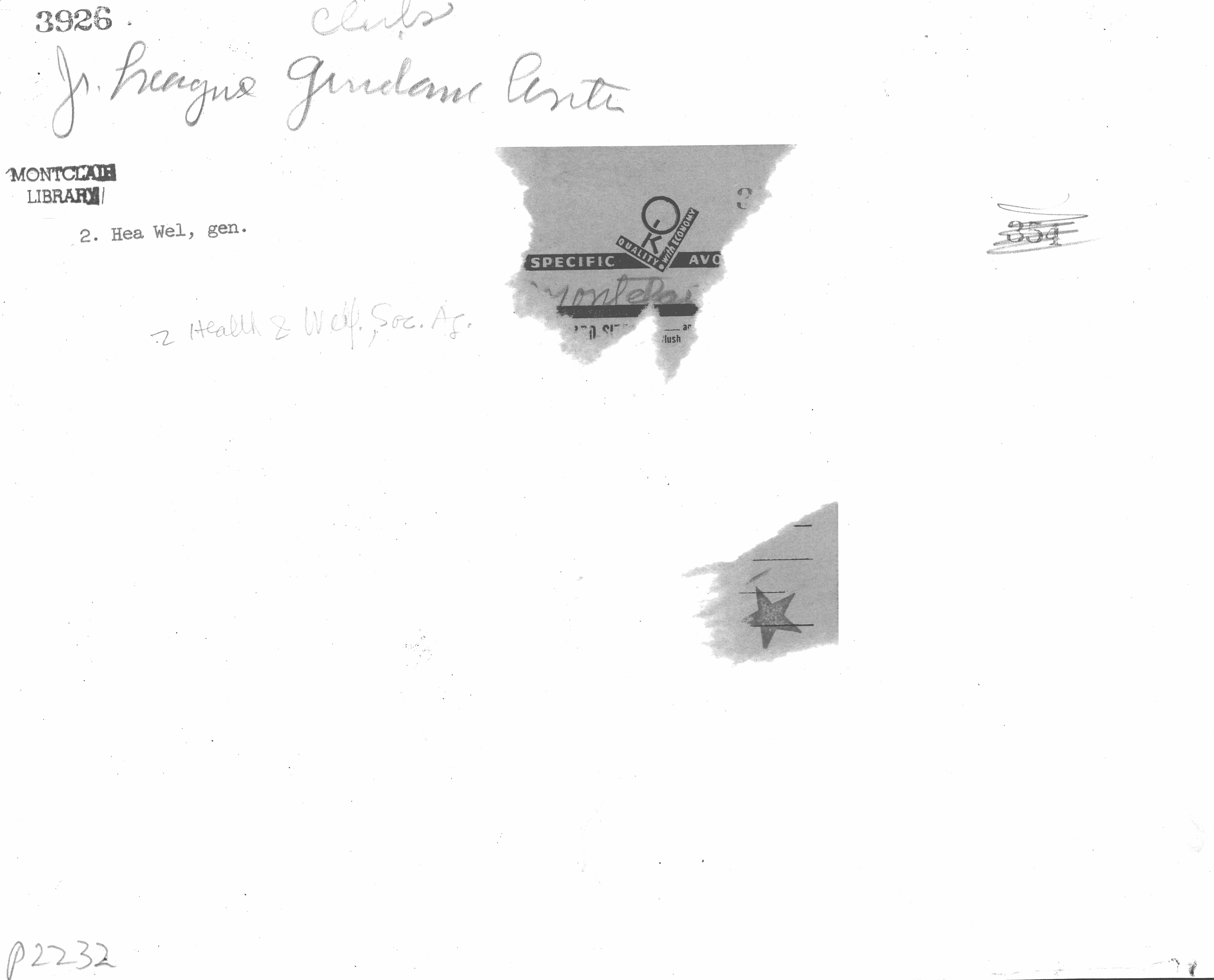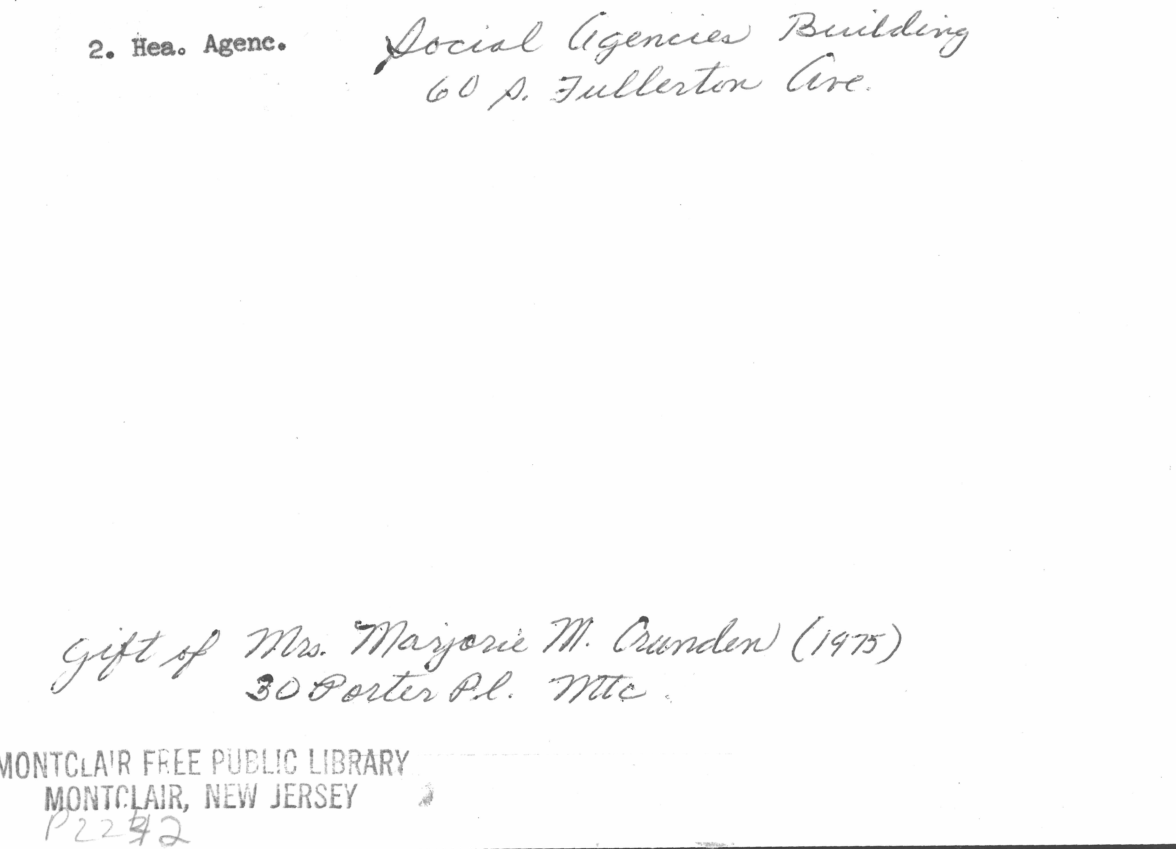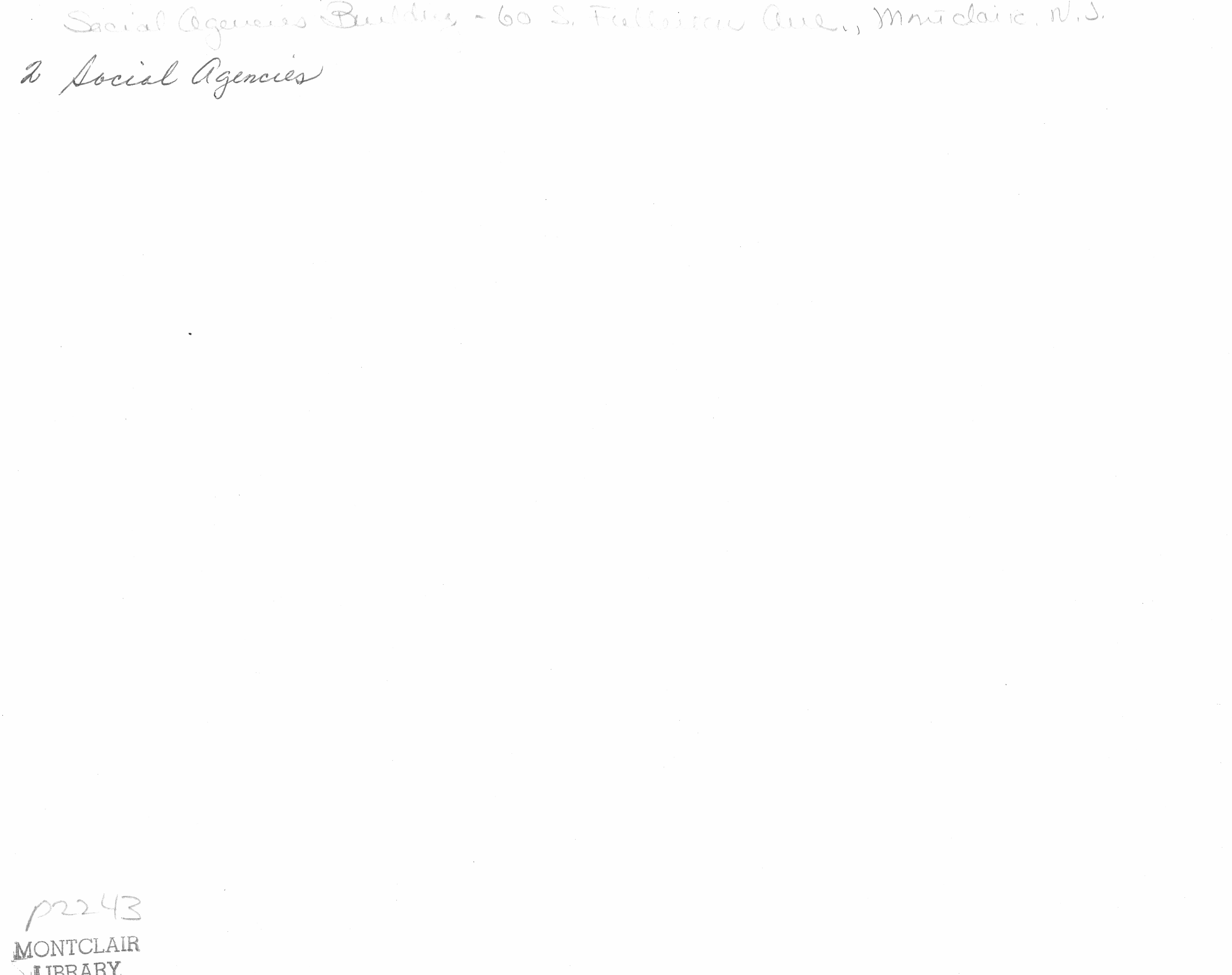 Family Welfare Society (originally Altruist Society of Montclair and later Family and Children's Society) 213 Glenridge Avenue