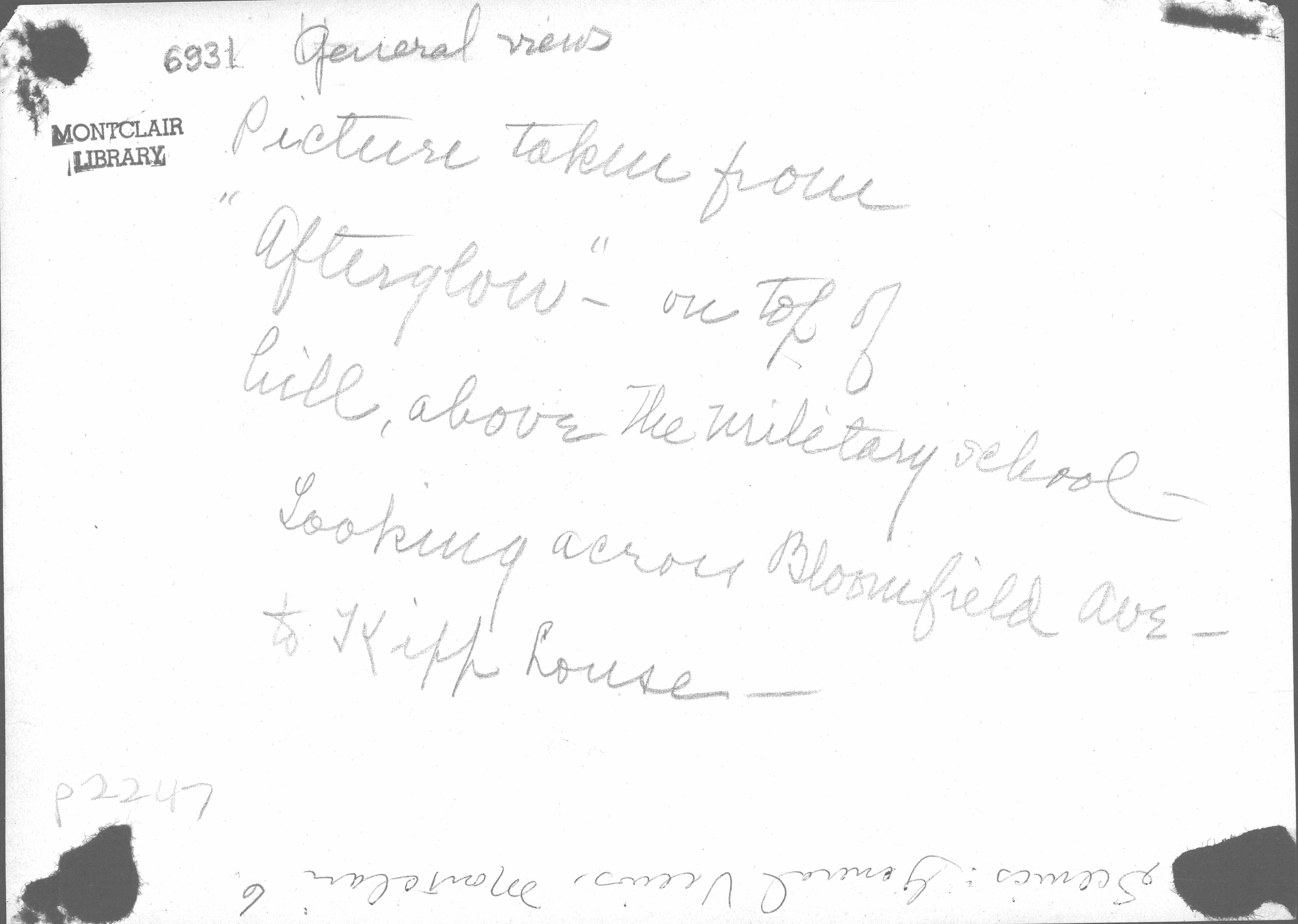Afterglow Way looking across Bloomfield Avenue to Frederick Kipp's Residence