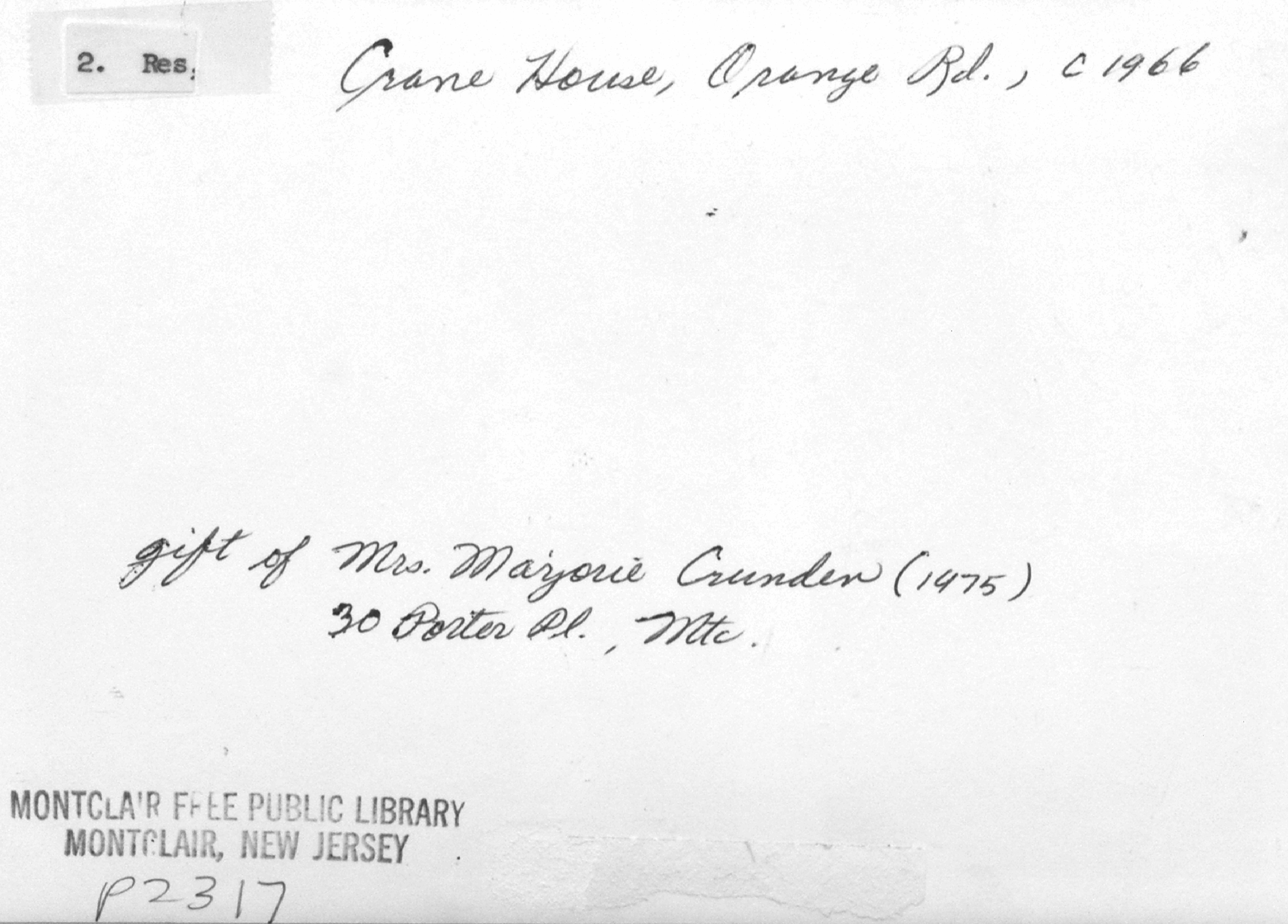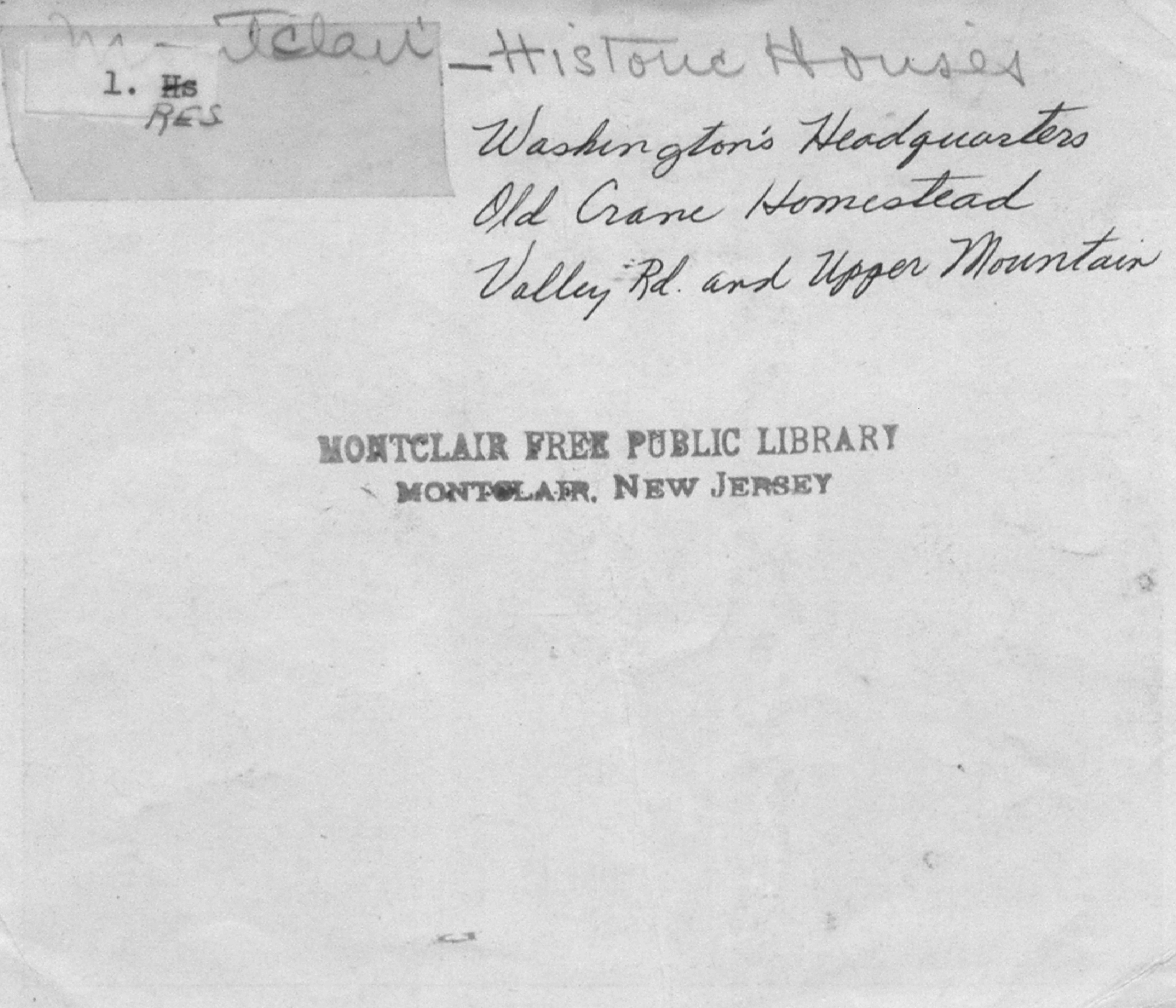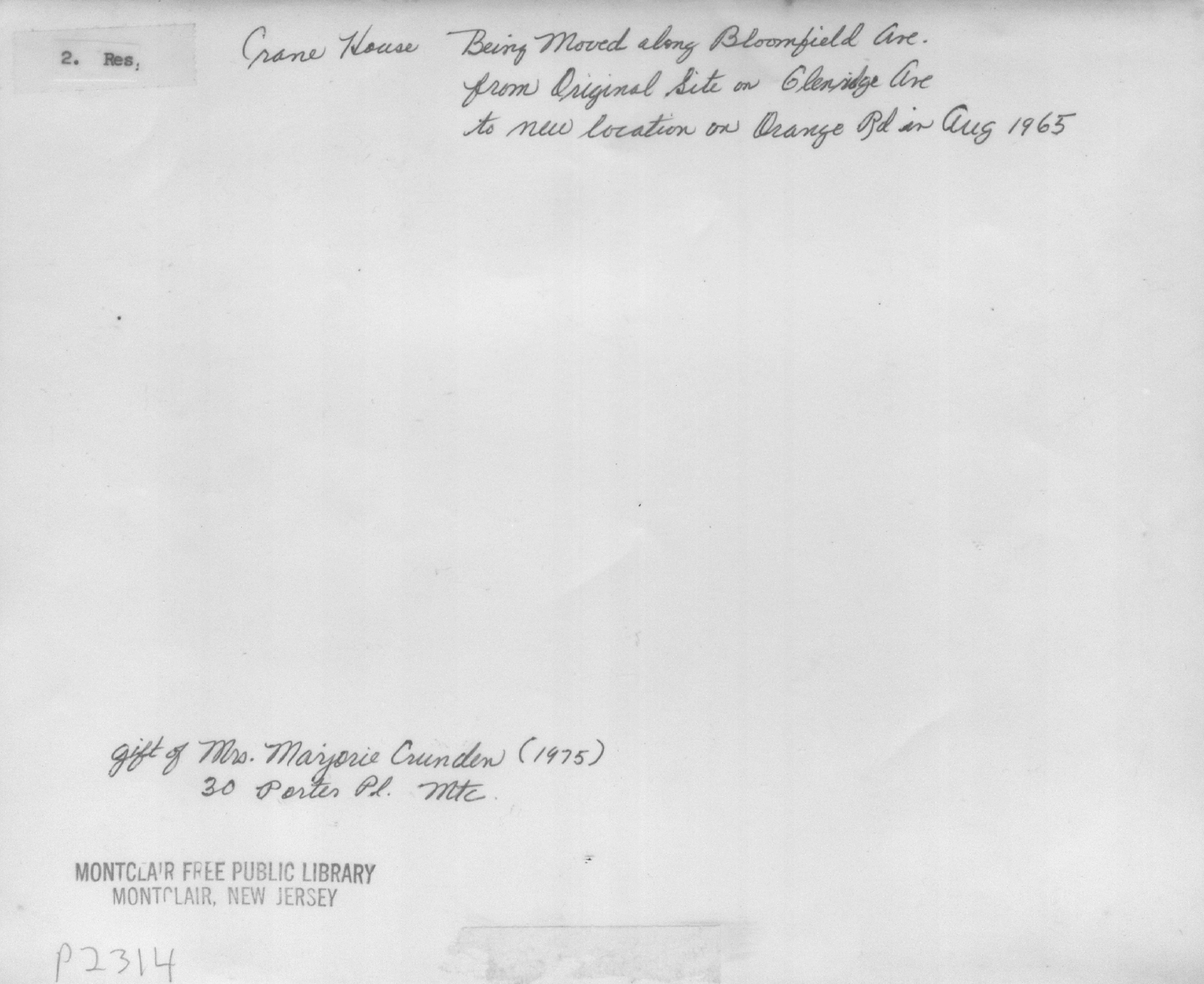 Israel Crane's Residence (Montclair Historical Society) ca. 1965