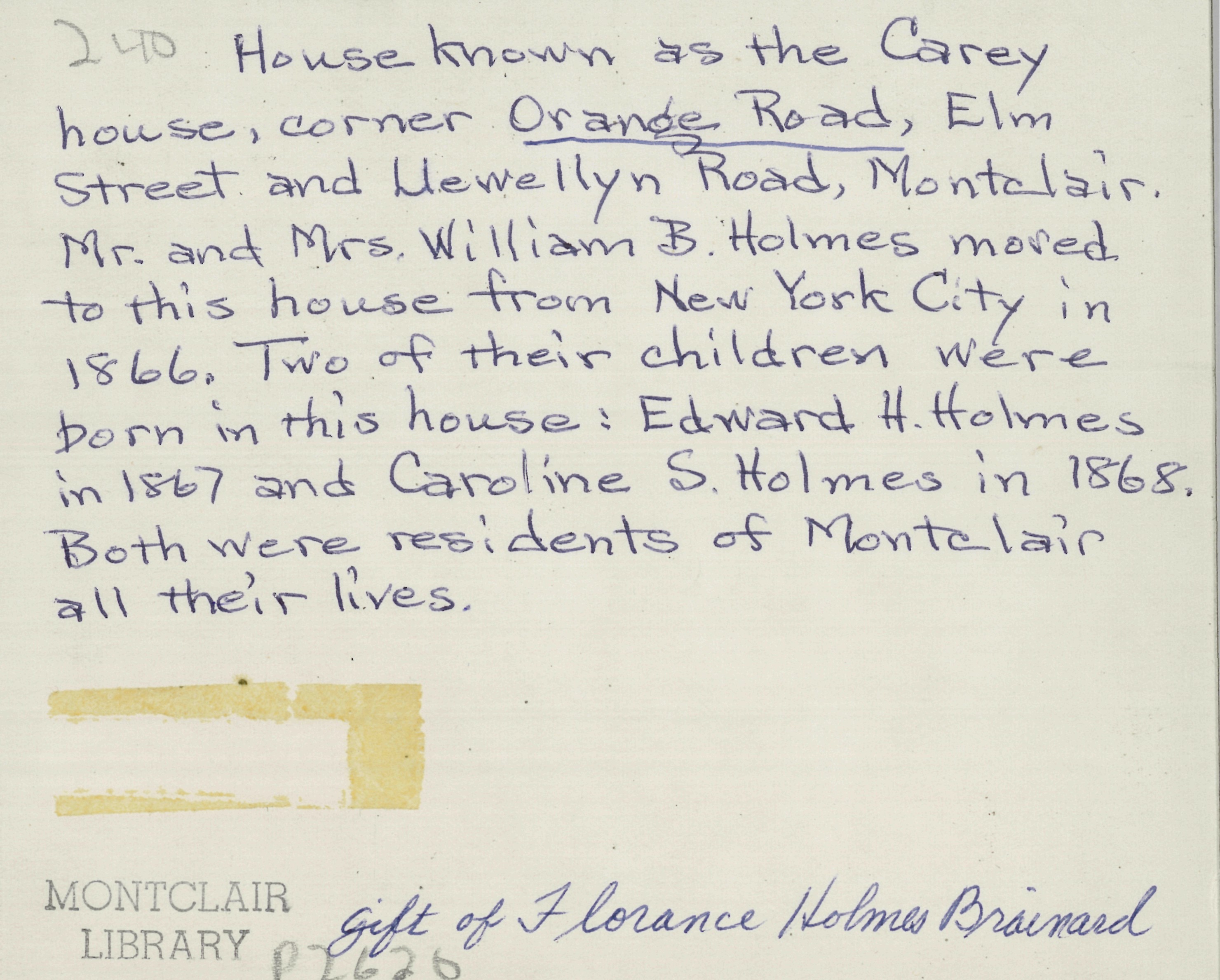 Stephen Carey's Residence (originally William B. Holmes' Residence)