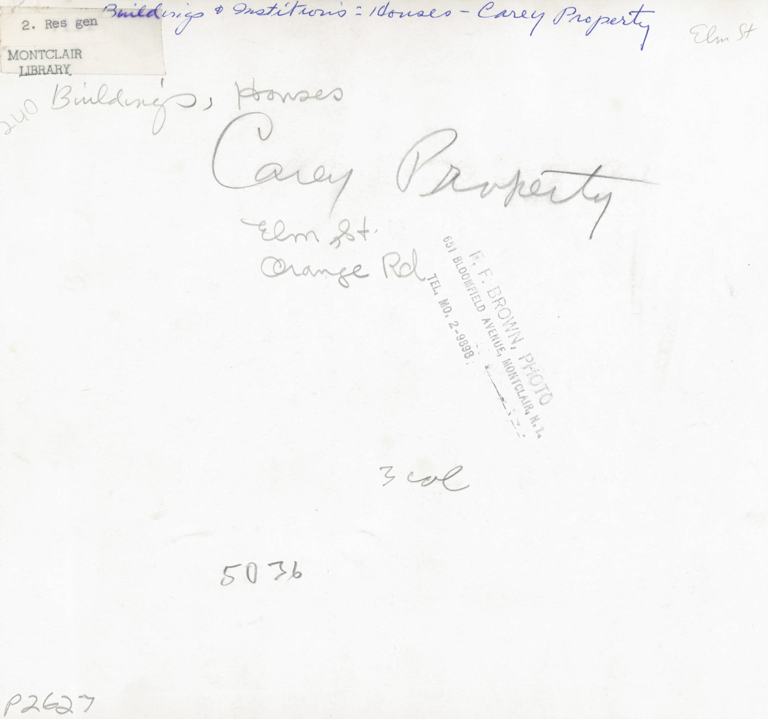 Stephen Carey's Residence (originally William B. Holmes' Residence) ca. 1940 Photo by Frank F. Brown