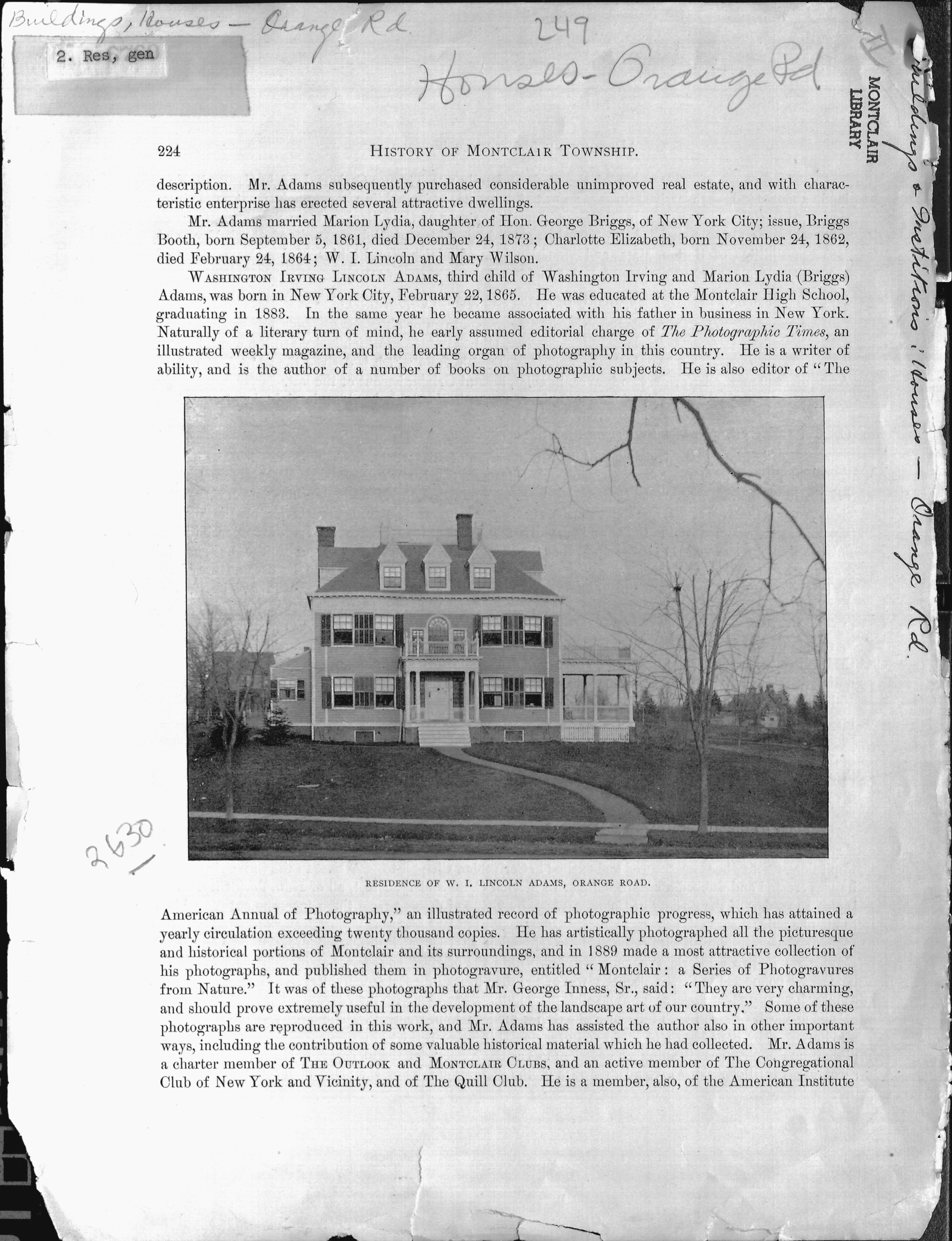 W. I. Lincoln Adams' Residence