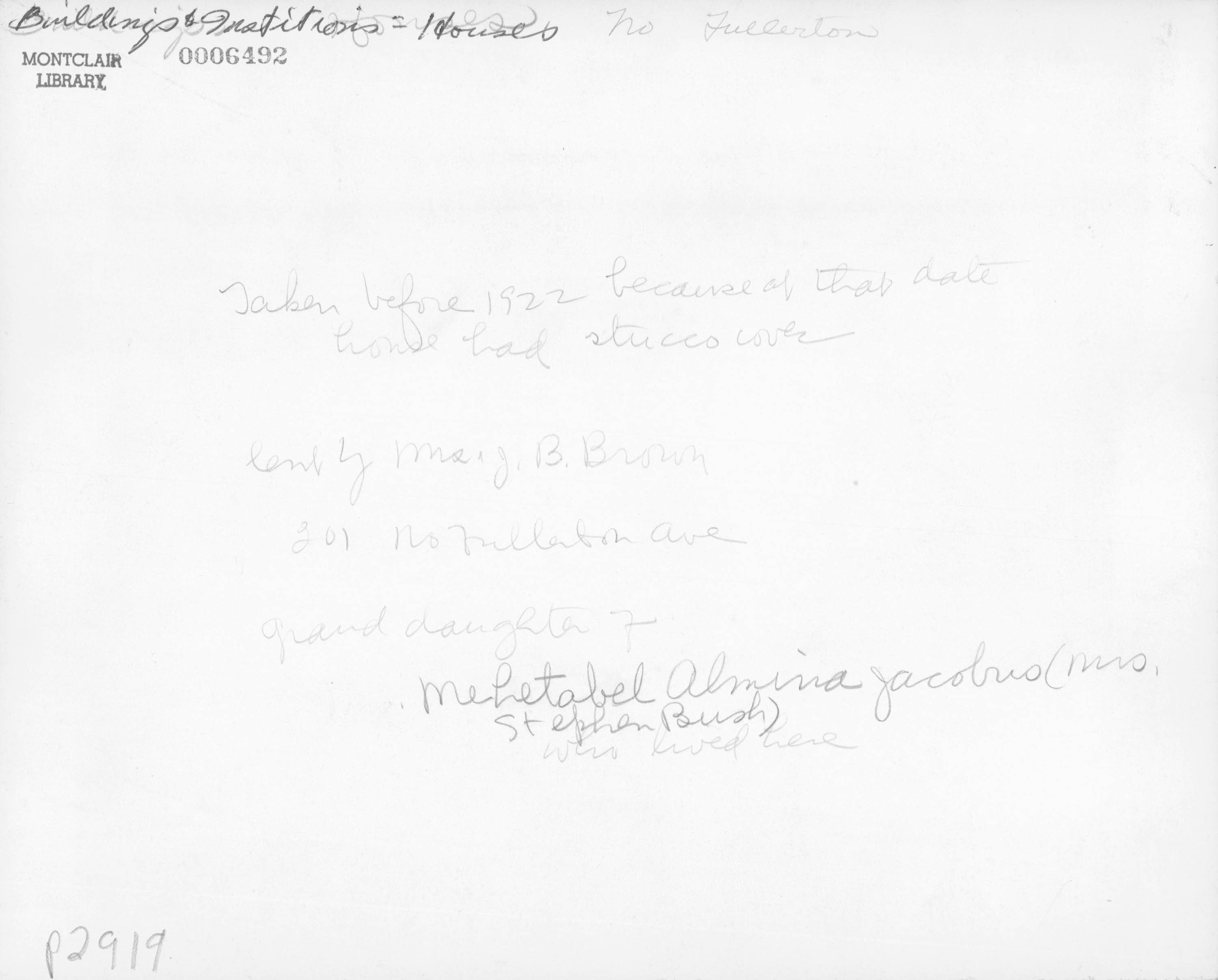 36 Fairfield Street (later Mrs. Samuel Holmes's Residence) Marlboro Park