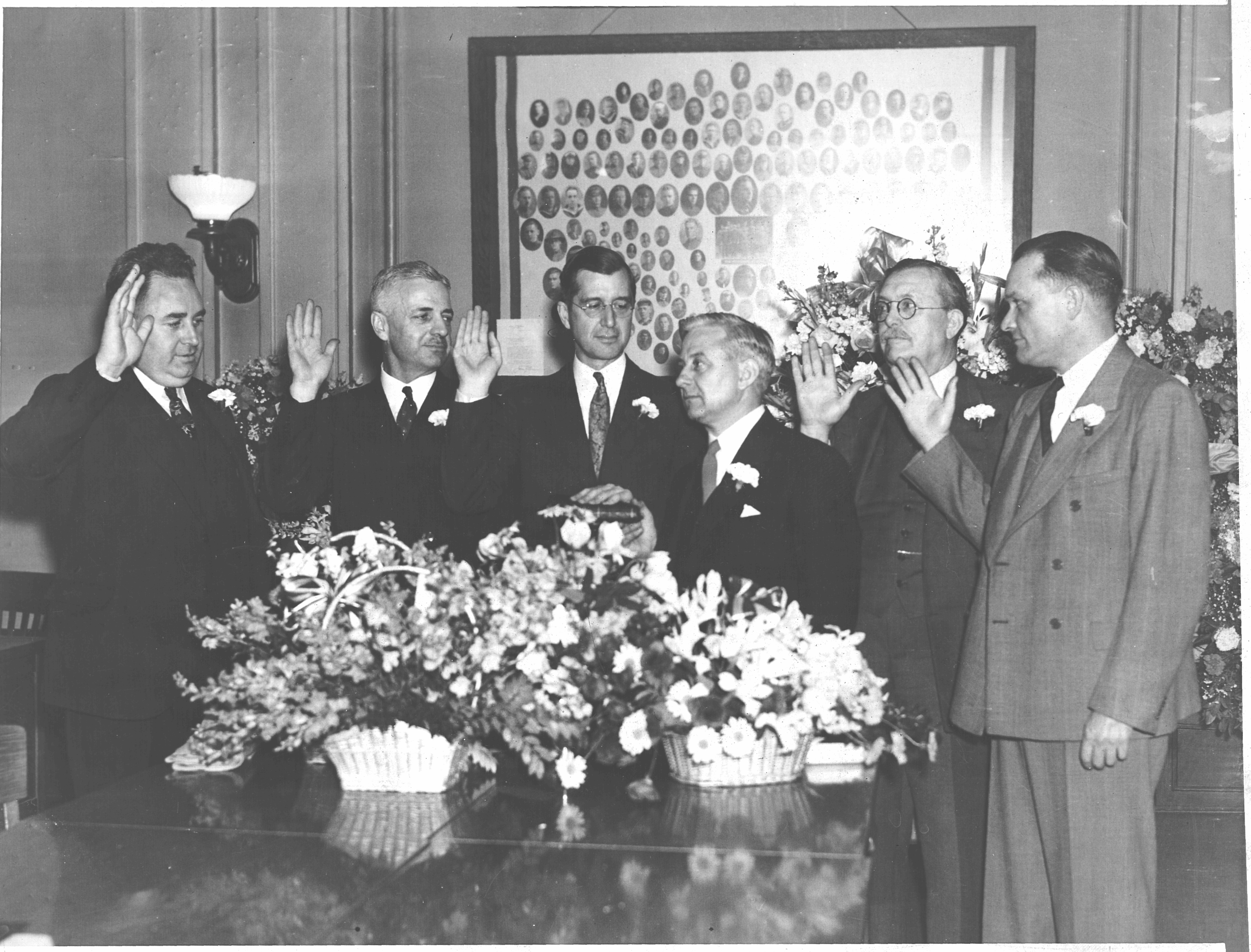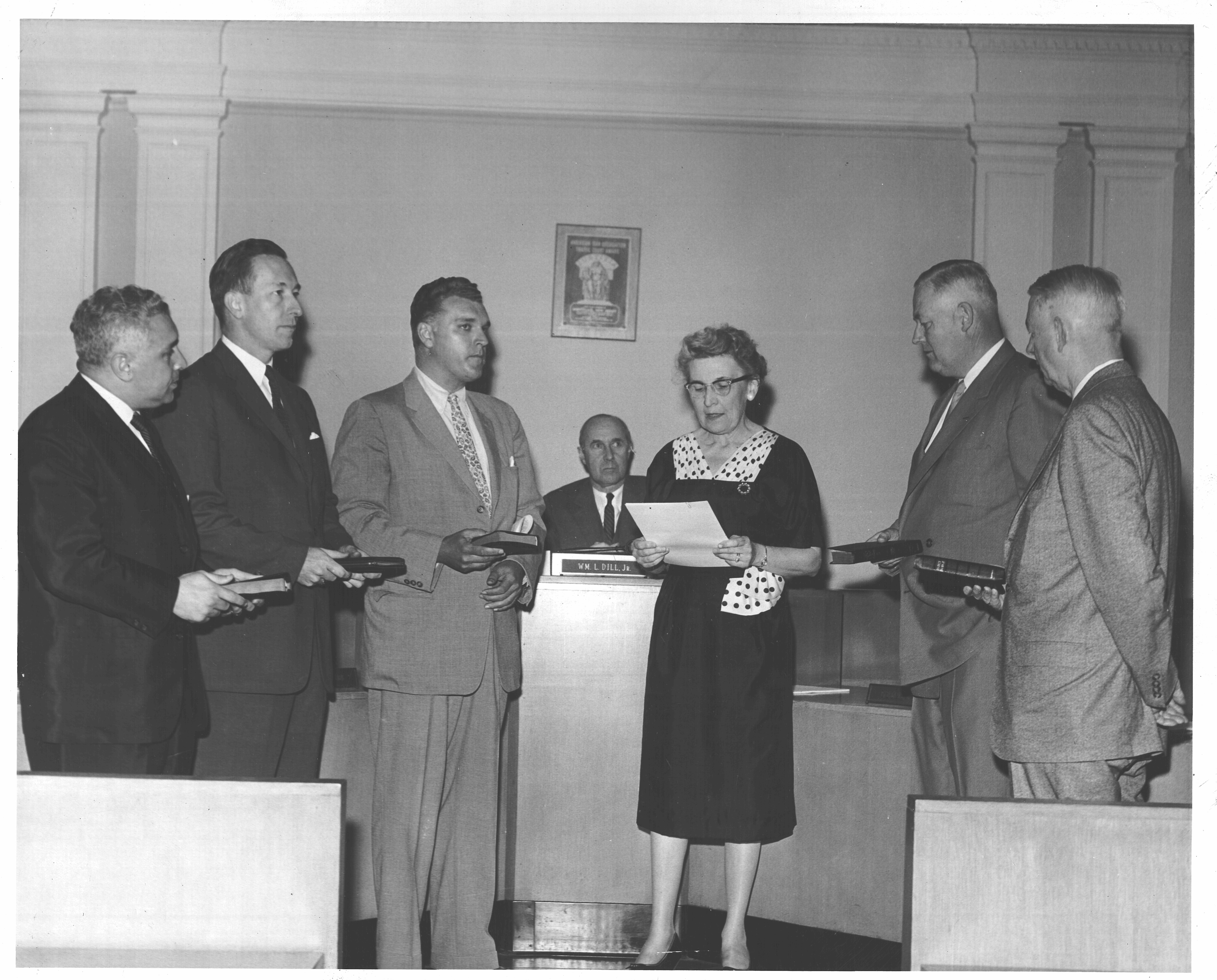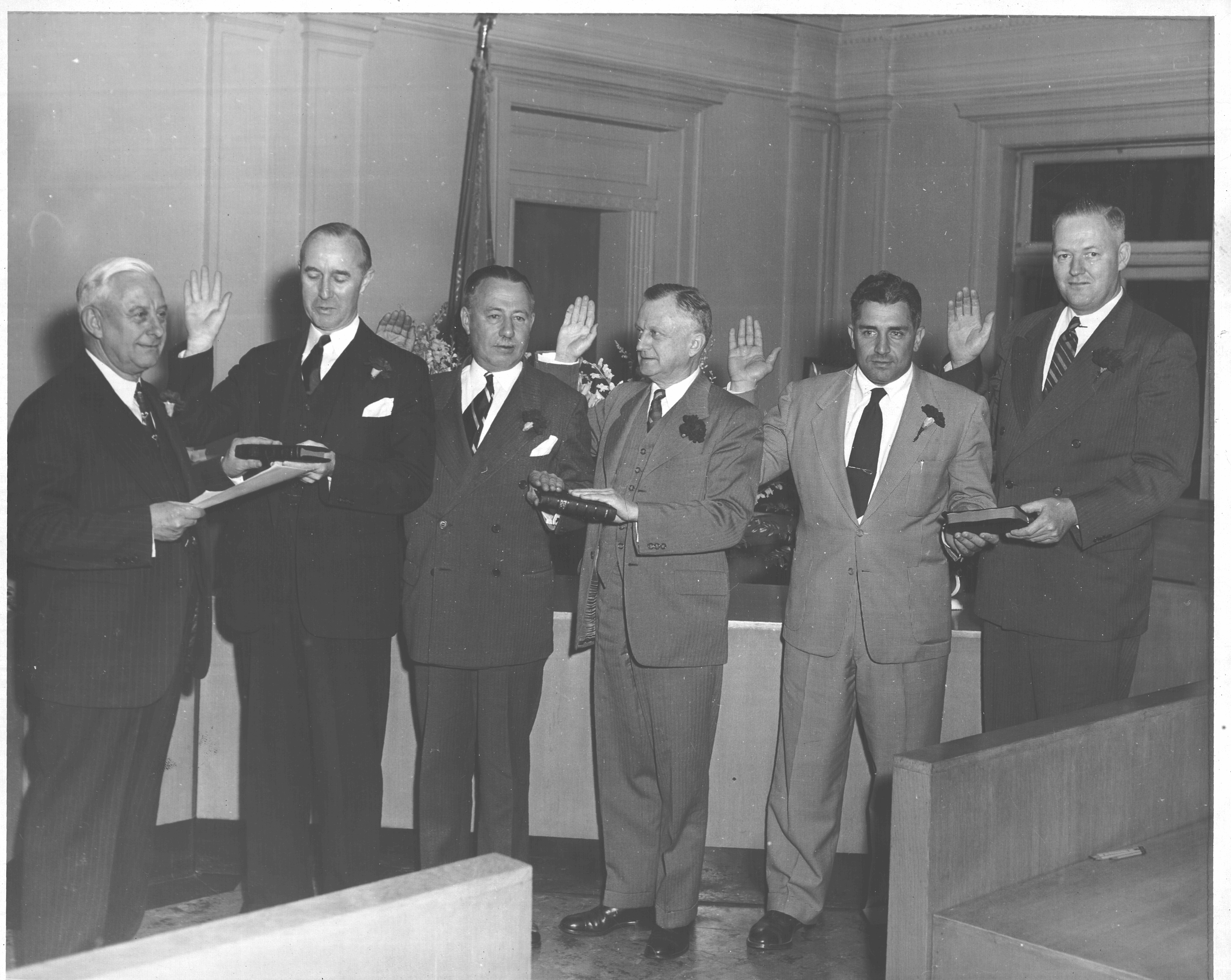 Town Clerk swearing in Town Commissioners Duane E. Minard March 27, 1951