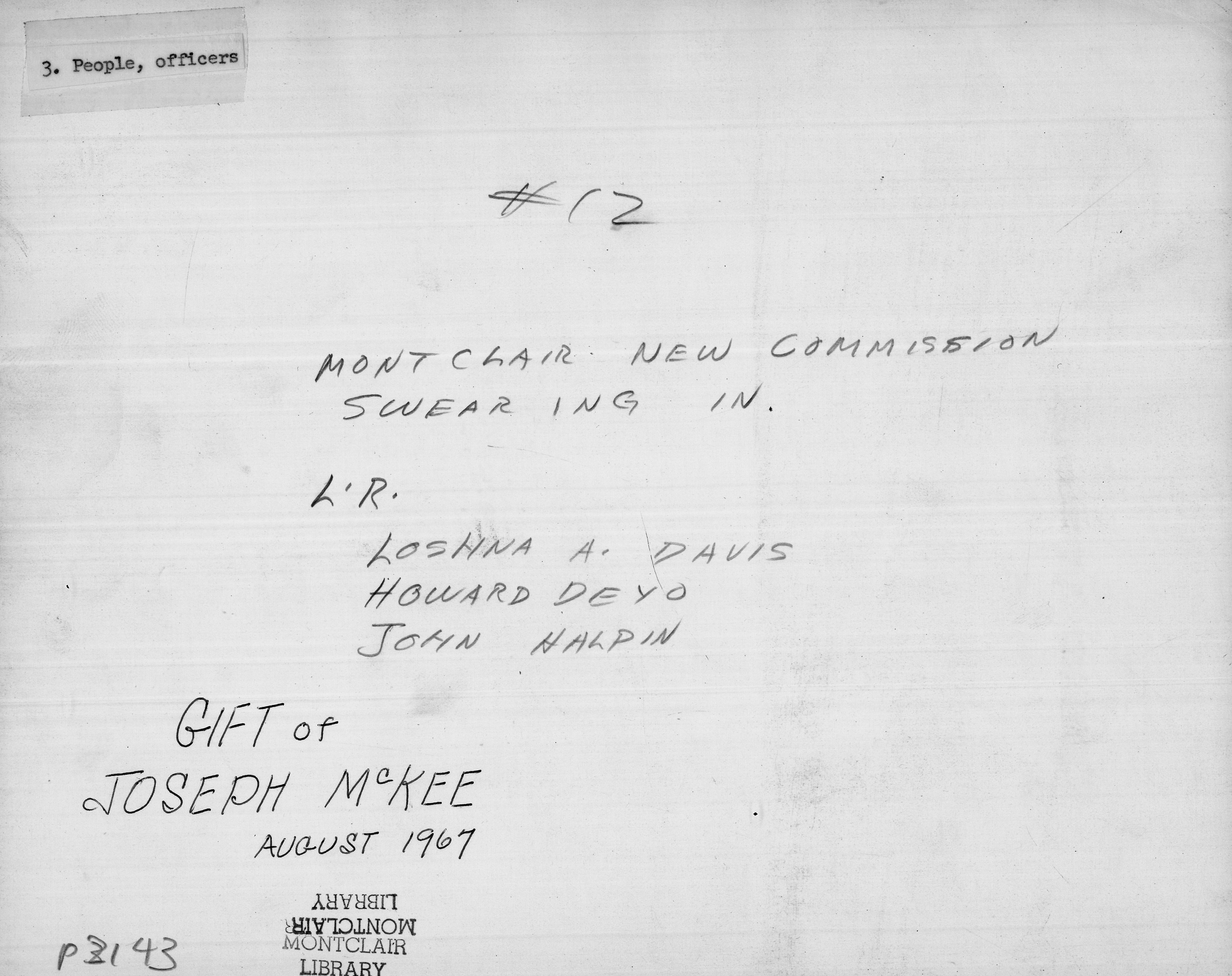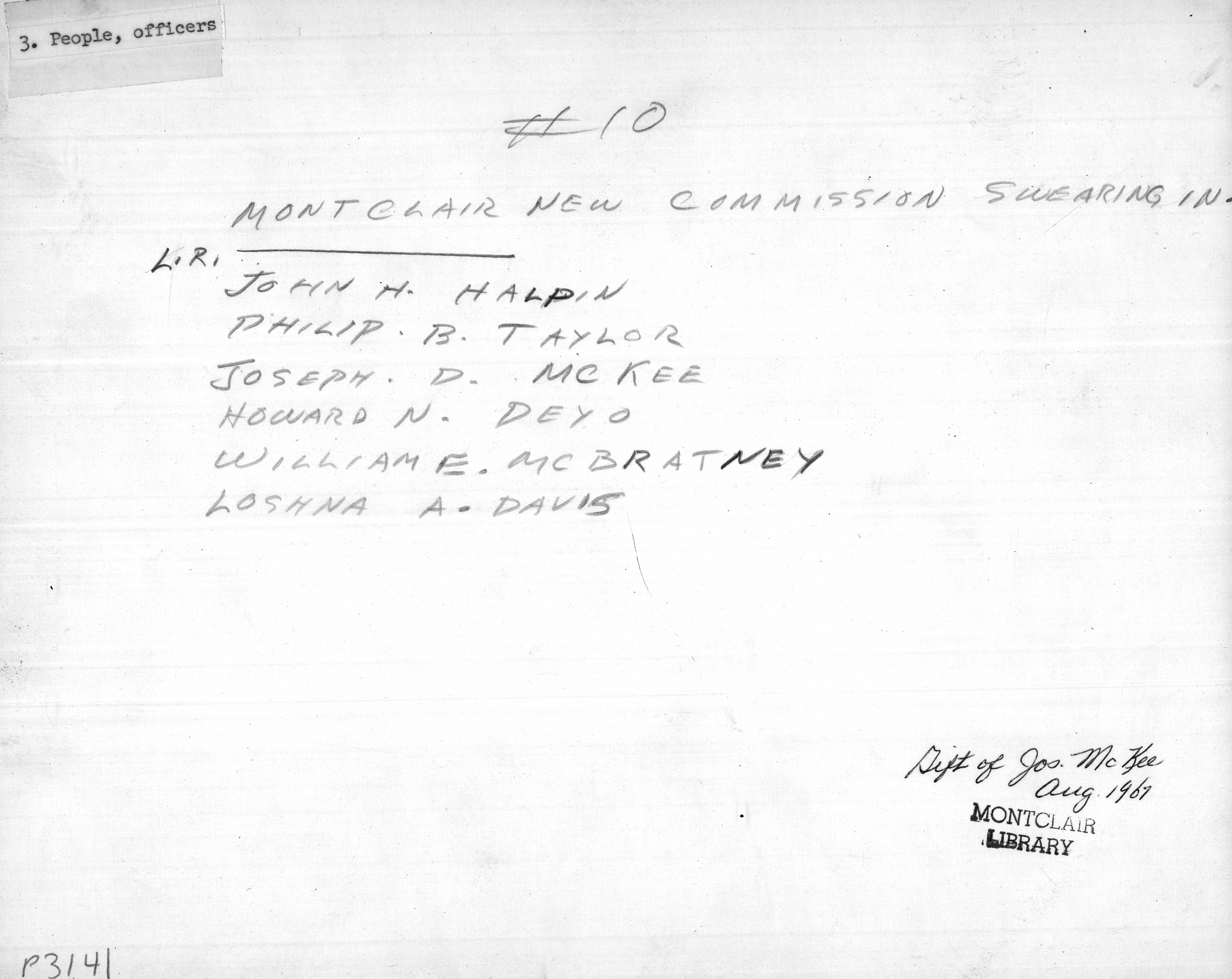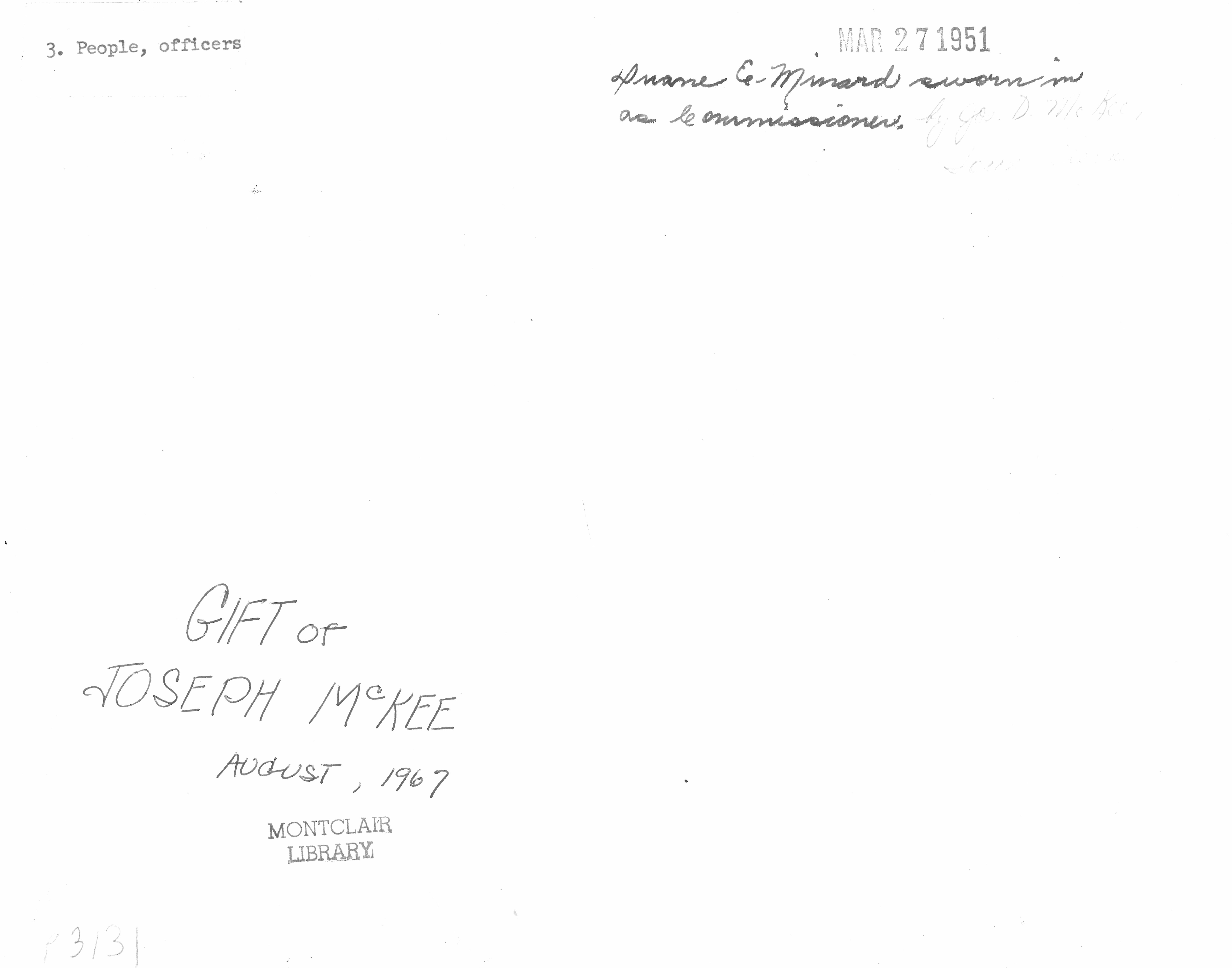 Town Clerk swearing in Town Commissioners Duane E. Minard March 27, 1951