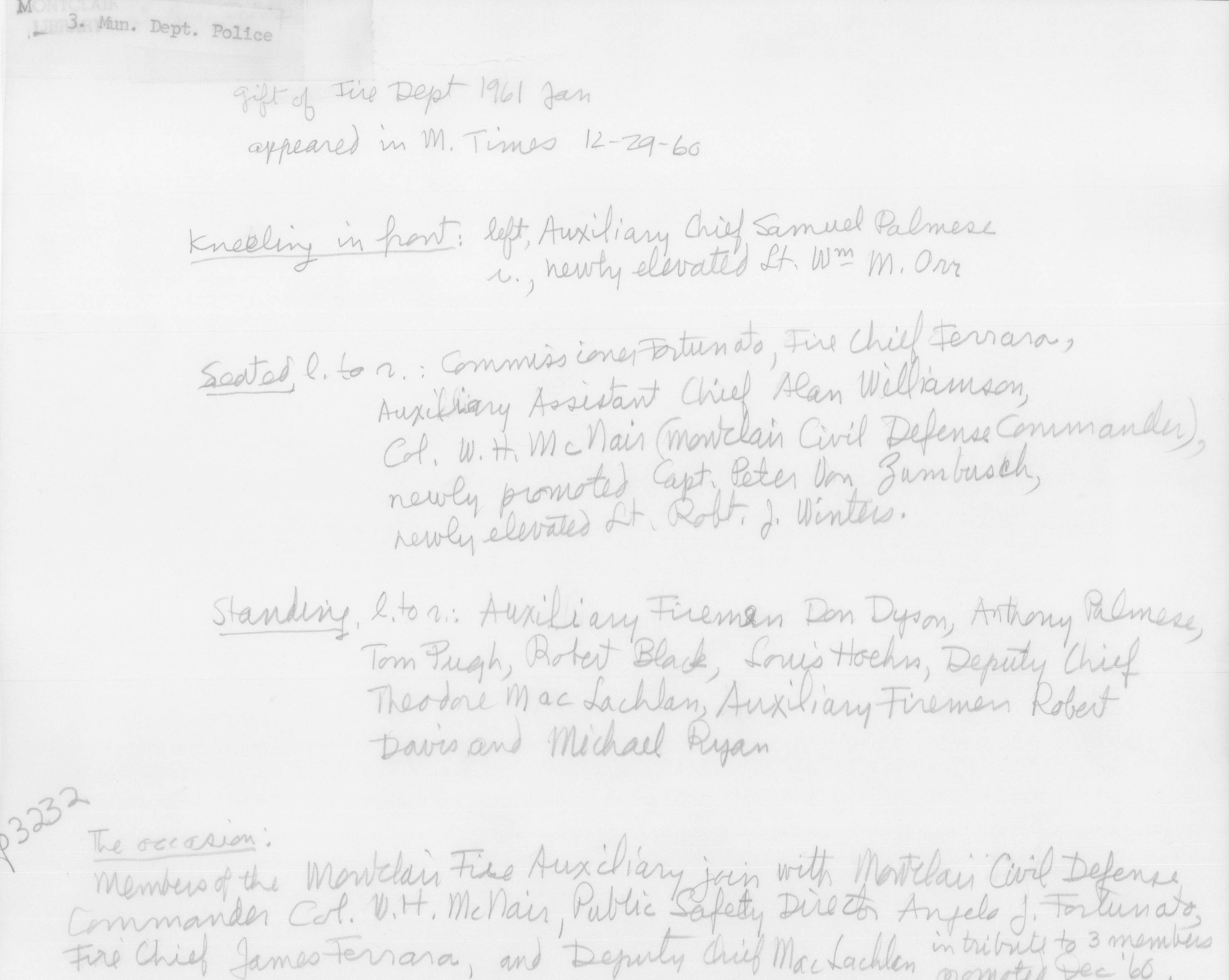 Montclair Fire Auxciliary Montclair Civil Defense and Fire Officials December 29, 1960