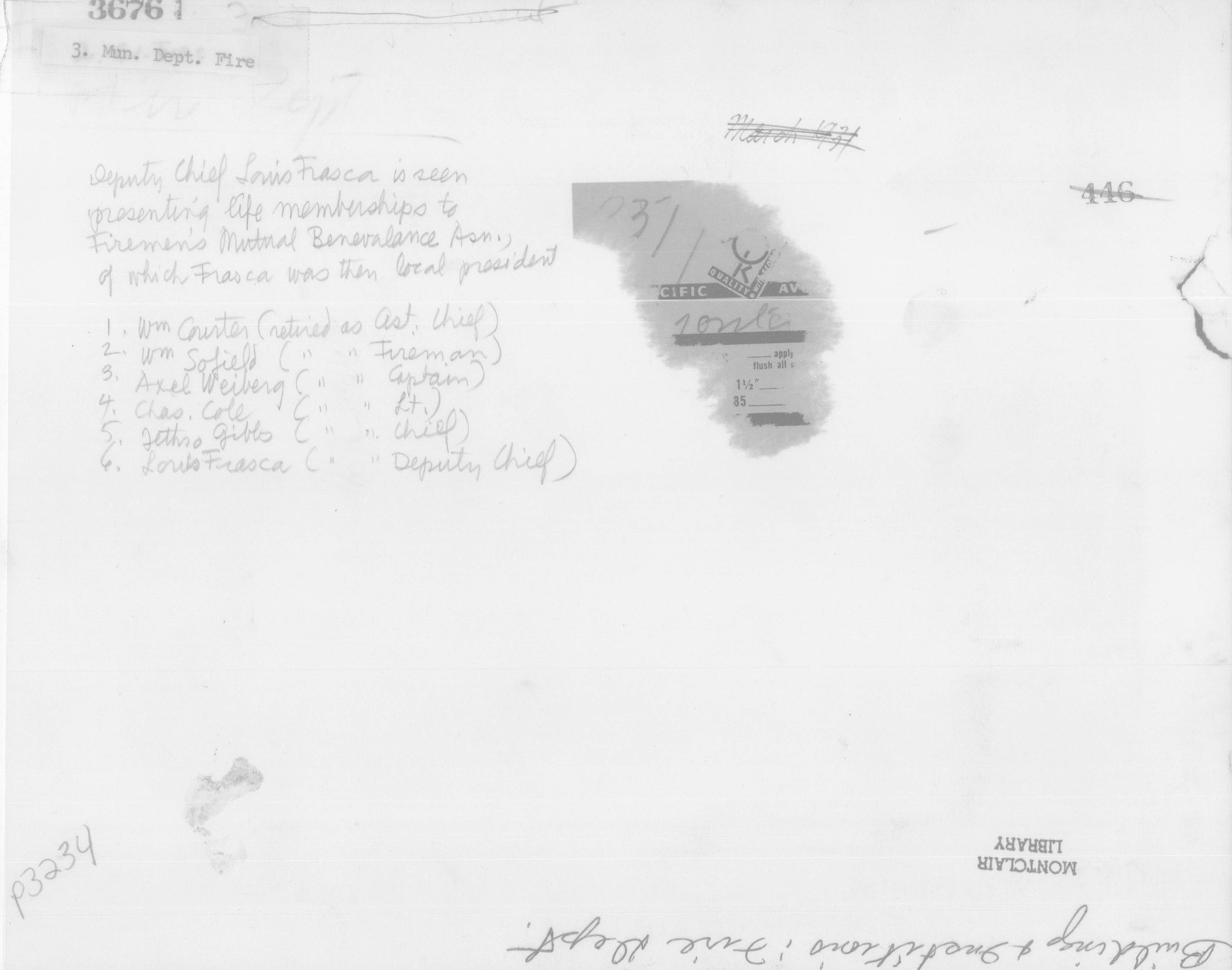 Deputy Chief Vito Frasca December 27, 1957