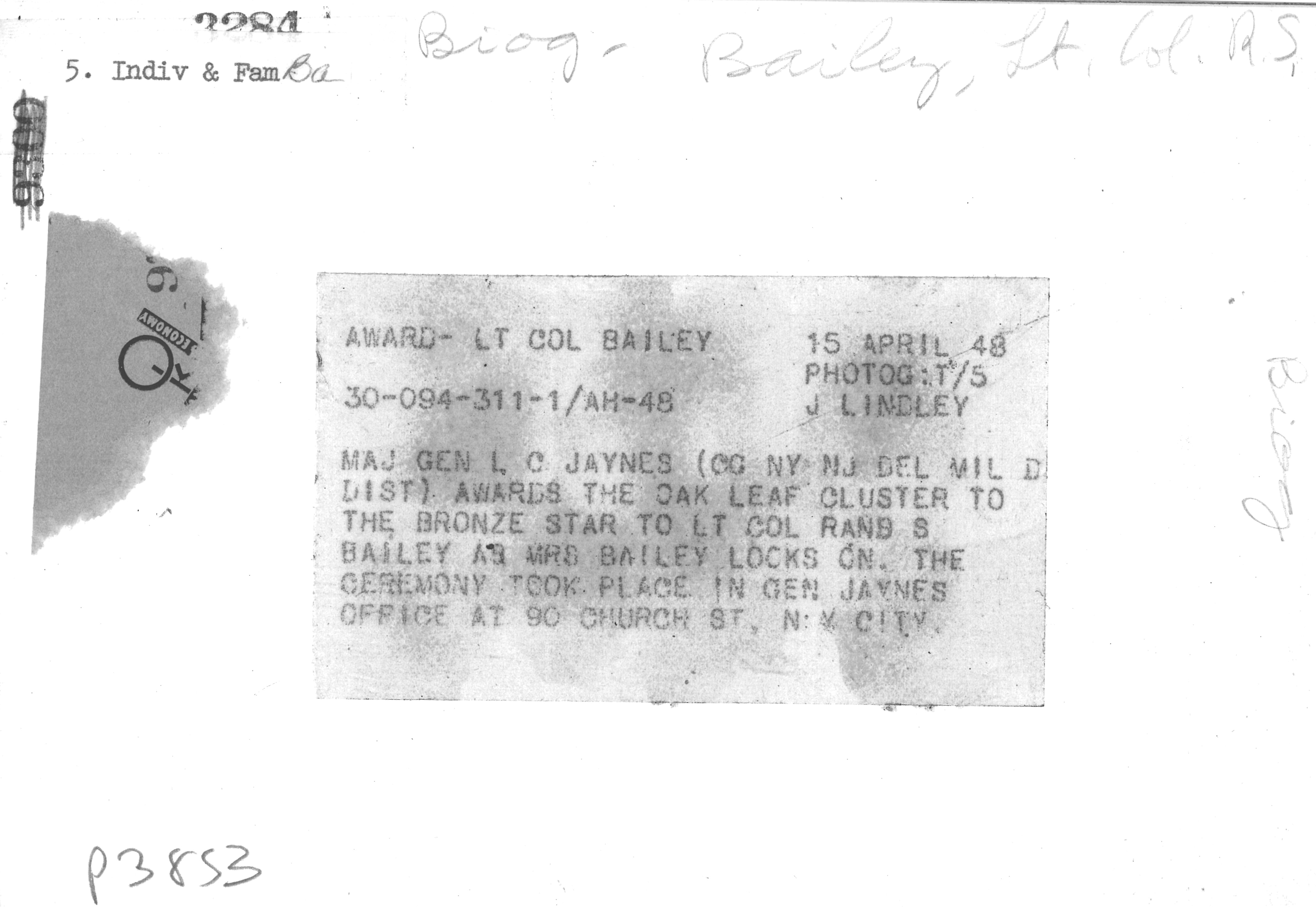 Lieutenant Colonel R. S. BaileyEvents Military World War II April 1948