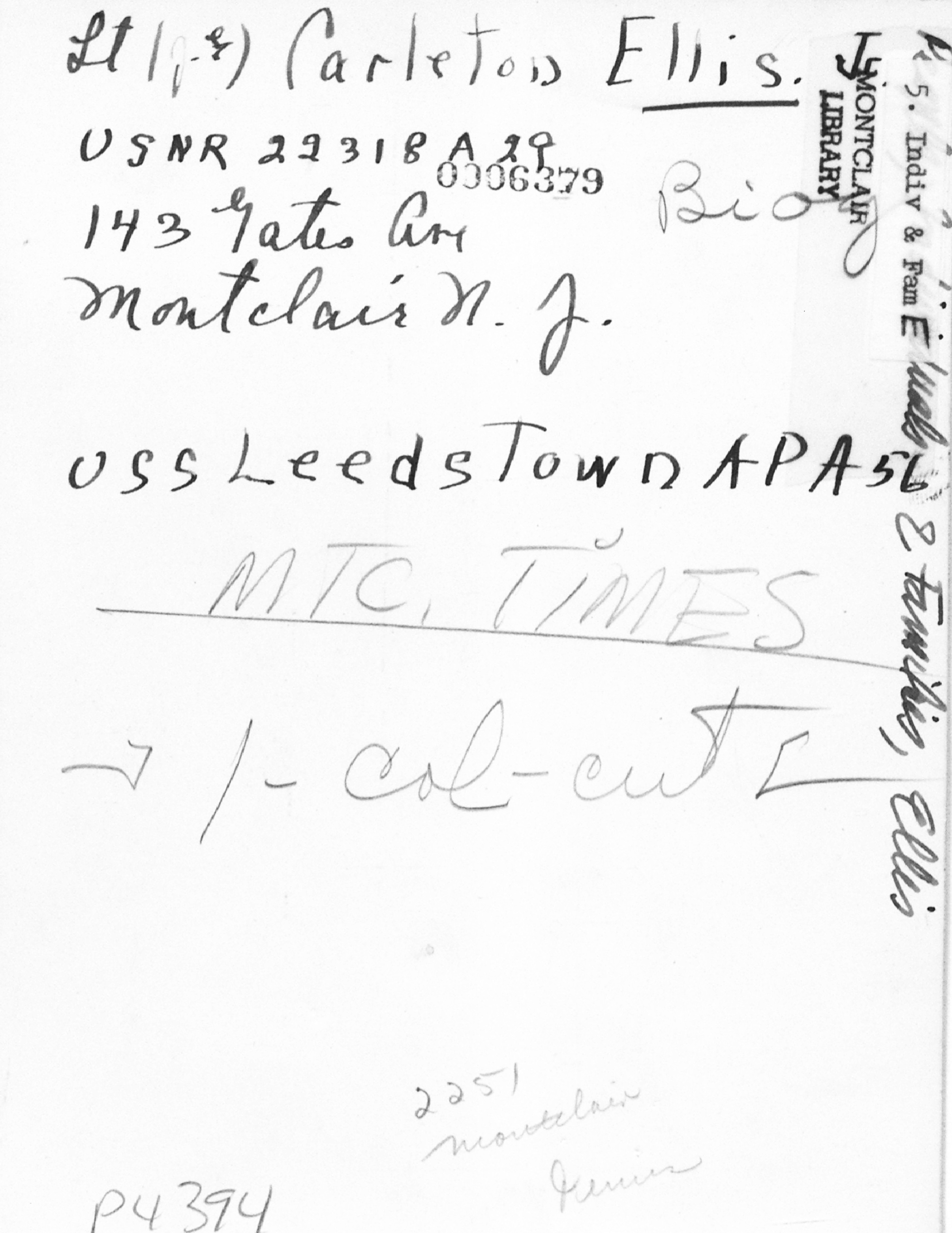 p4394 People portrait Lieutenant Carelton Ellis Jr. USNR