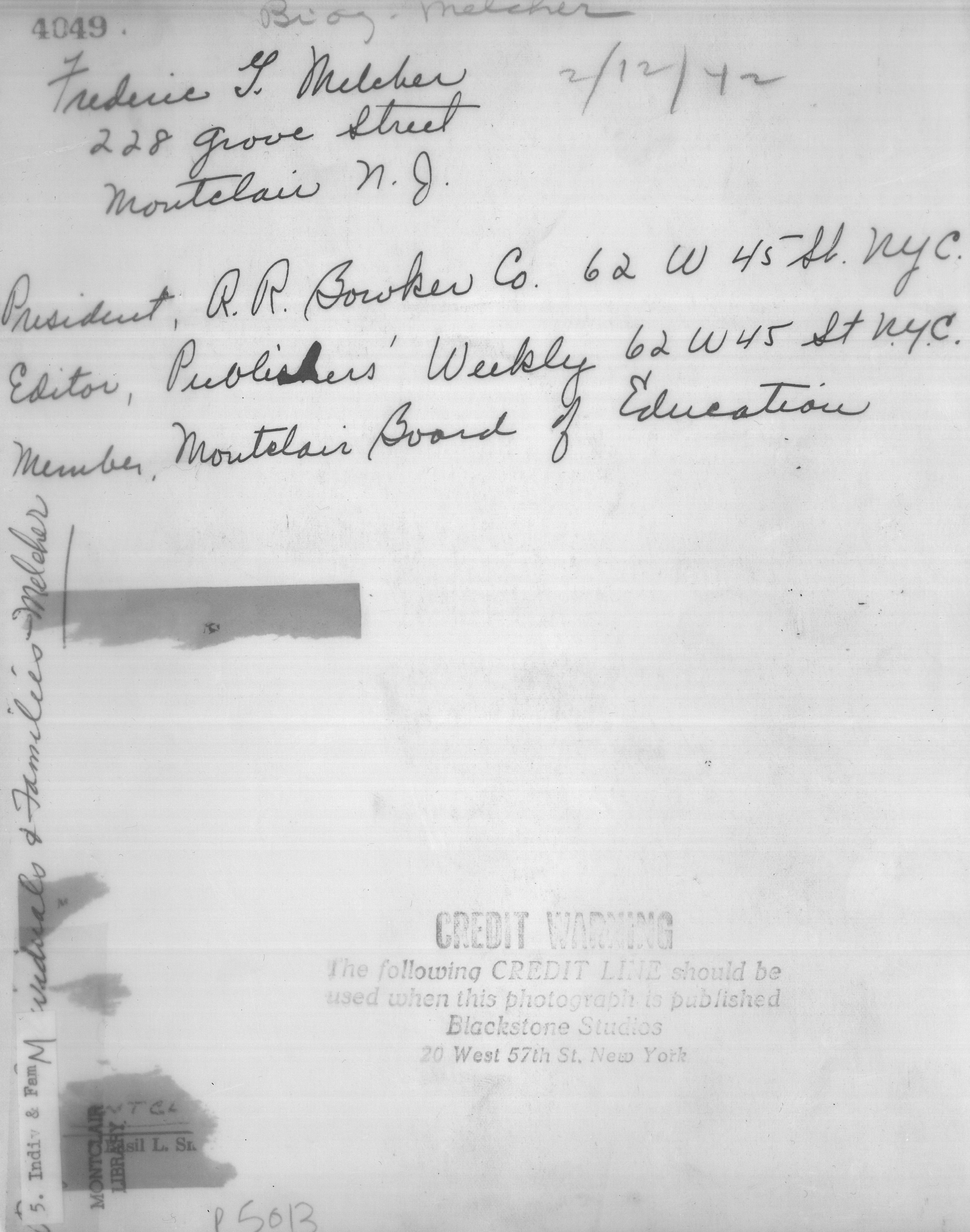 p5013 People Notable portrait Frederick G. Melcher Publishers