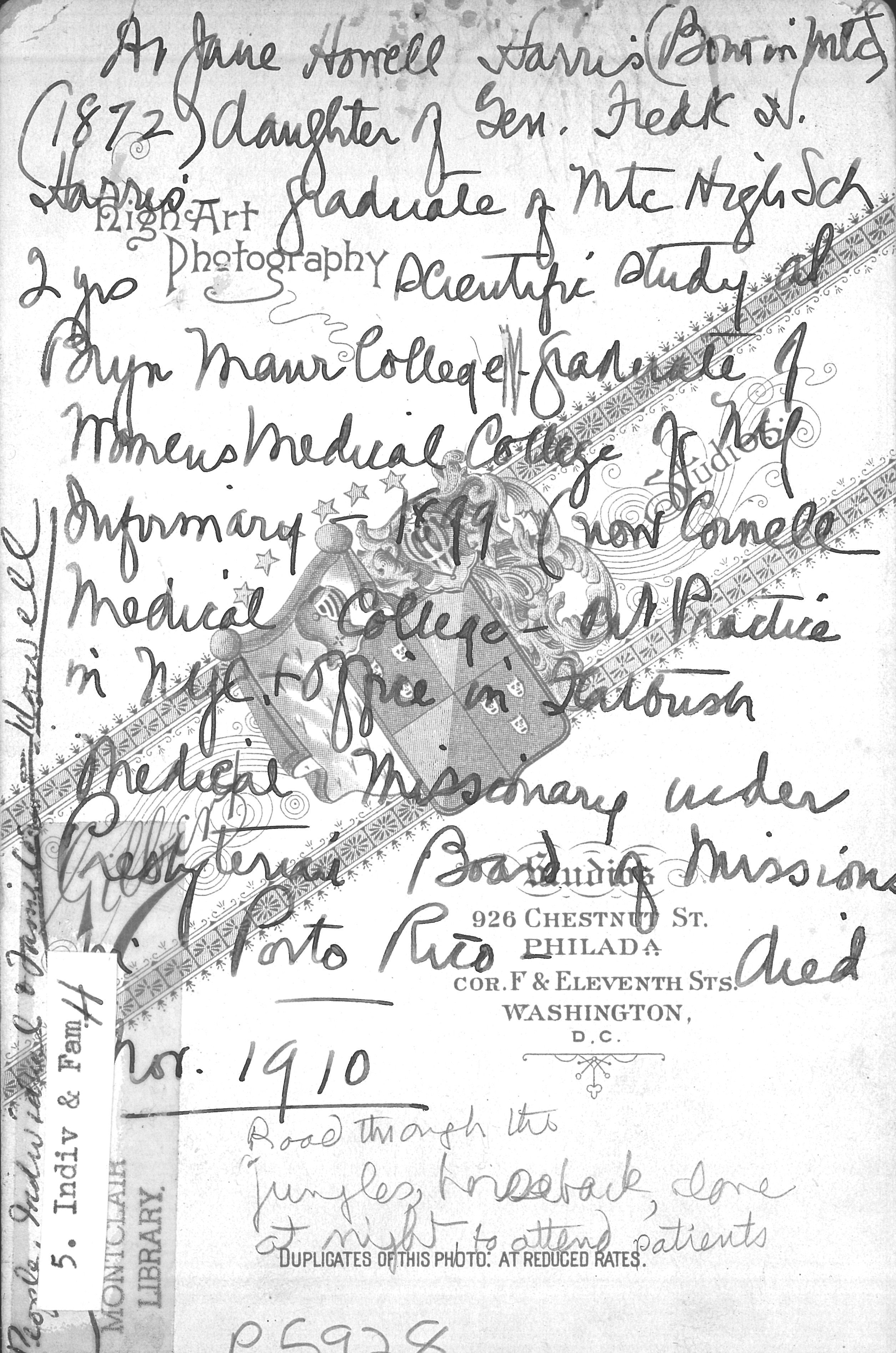 Dr. Jane Howell Harris Physicians ca. 1892