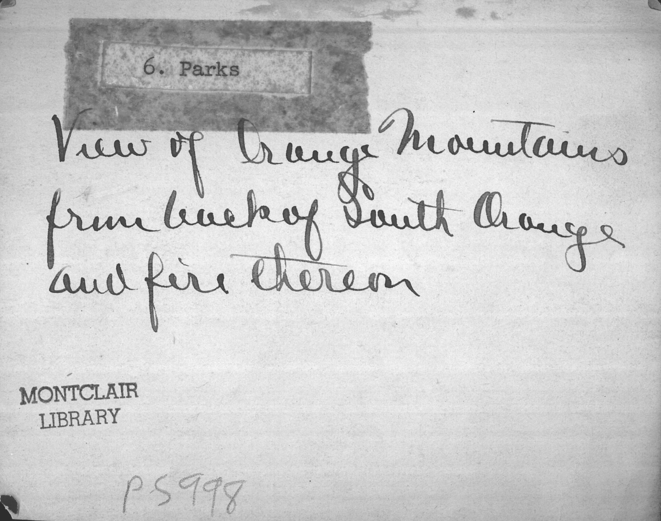 Mountains Orange Mountains South Orange Events Fires ca. 1895