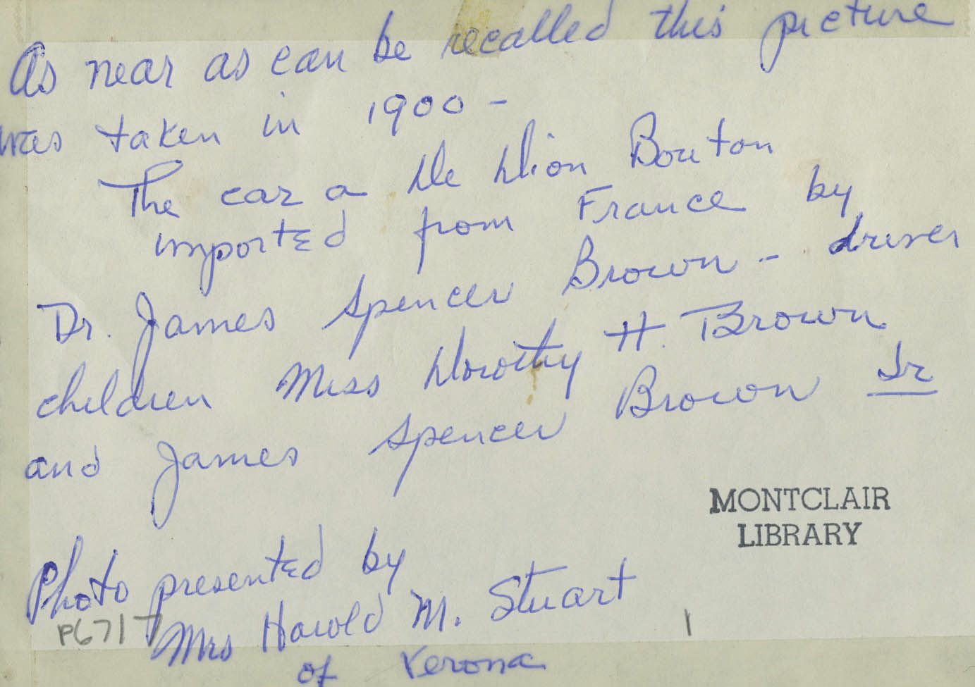 First Automobile in Montclair 1900