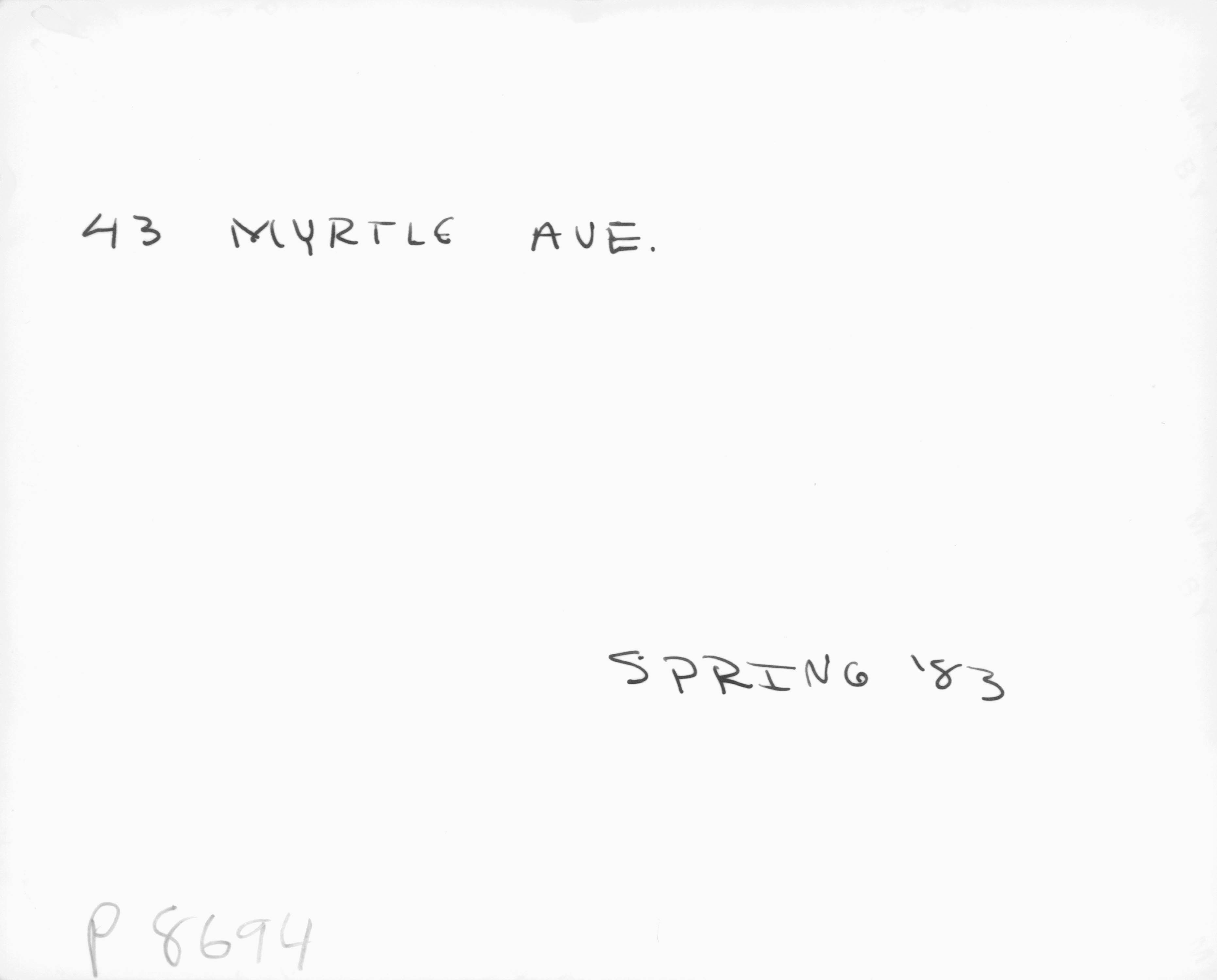 43 Myrtle Avenue (Historic Survey) Spring 1983