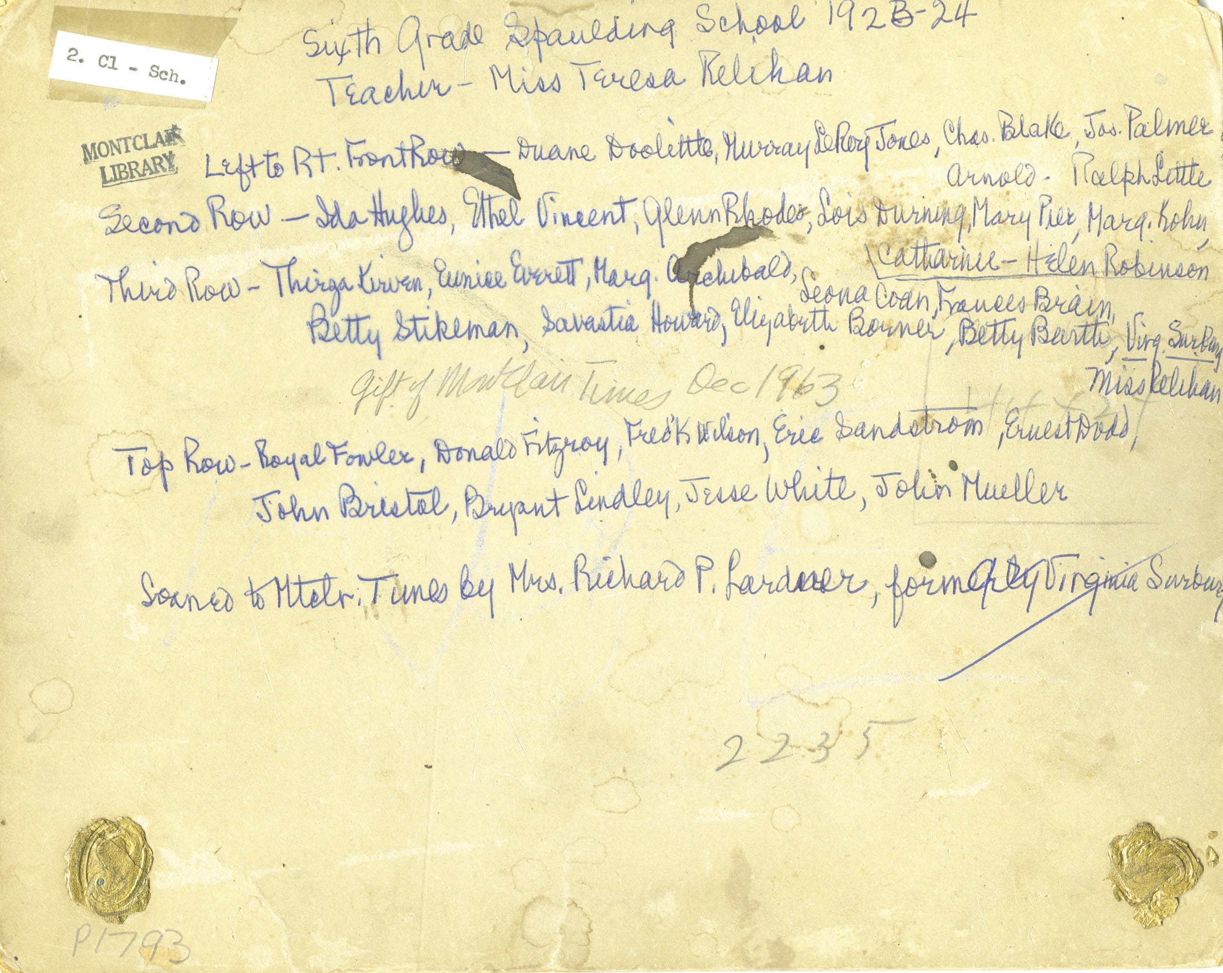 Sixth Grade 1933